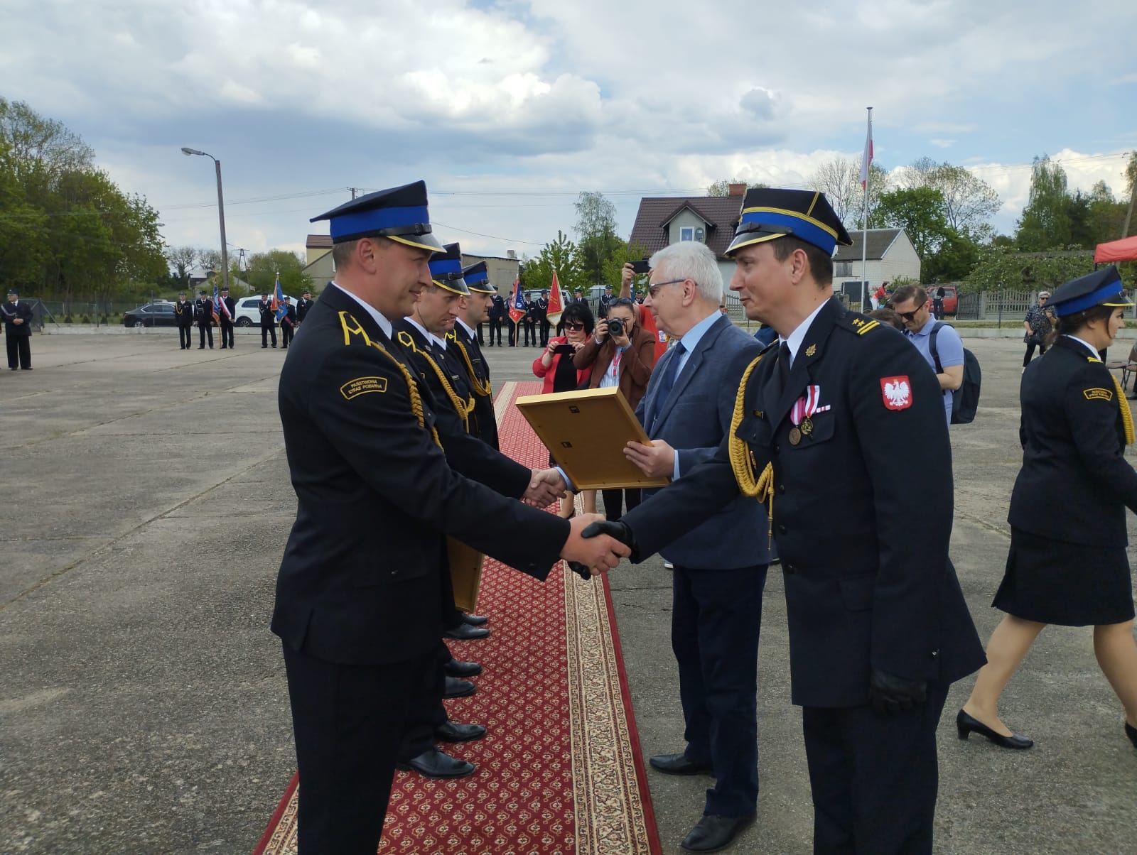 Goście uczestniczący w uroczystości składali gratulacje odznaczonym, awansowanym i wyróżnionym strażakom oraz osobom zaangażowanym w sprawy pożarnictwa, doceniając ciężką pracę strażaków.