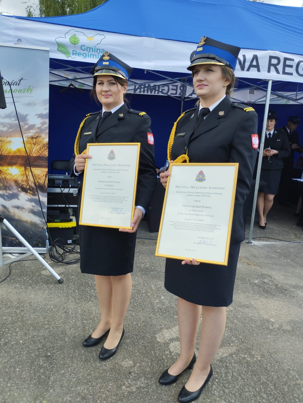 Po zakończeniu ceremonii odznaczeń i awansów Pan Maciej Wąsik Sekretarz Stanu w Ministerstwie Spraw Wewnętrznych i Administracji w asyście nadbryg. Jarosława Piotrowskiego Mazowieckiego Komendanta Wojewódzkiego PSP wręczyli Decyzje Komendanta Głównego PSP o włączeniu jednostek OSP Pawłowo oraz OSP Szyjki do Krajowego Systemu Ratowniczo-Gaśniczego.