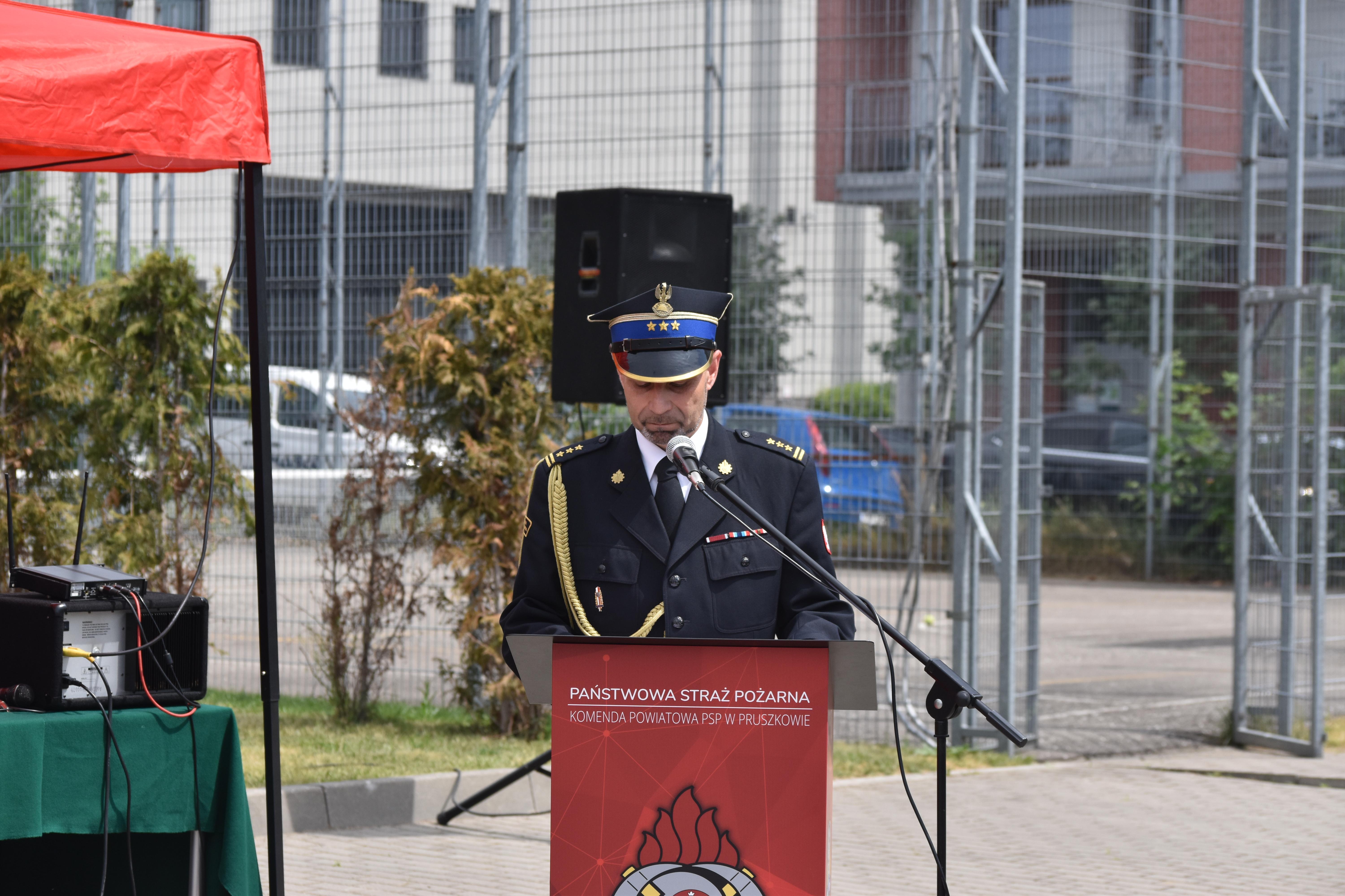 25 maja 2024 roku na terenie Komendy Powiatowej PSP w Pruszkowie odbyły się obchody ,,Powiatowego Dnia Strażaka 2024’’. Uroczysty apel rozpoczął się złożeniem przez dowódcę uroczystości mł. bryg. Mateusza Oleksego meldunku, Mazowieckiemu Komendantowi Wojewódzkiemu PSP nadbryg. Arturowi Gonerze, który dokonał przeglądu pododdziałów i przywitał się z pocztami sztandarowymi. Następnie w trakcie hymnu państwowego, uroczyście podniesiono flagę państwową.