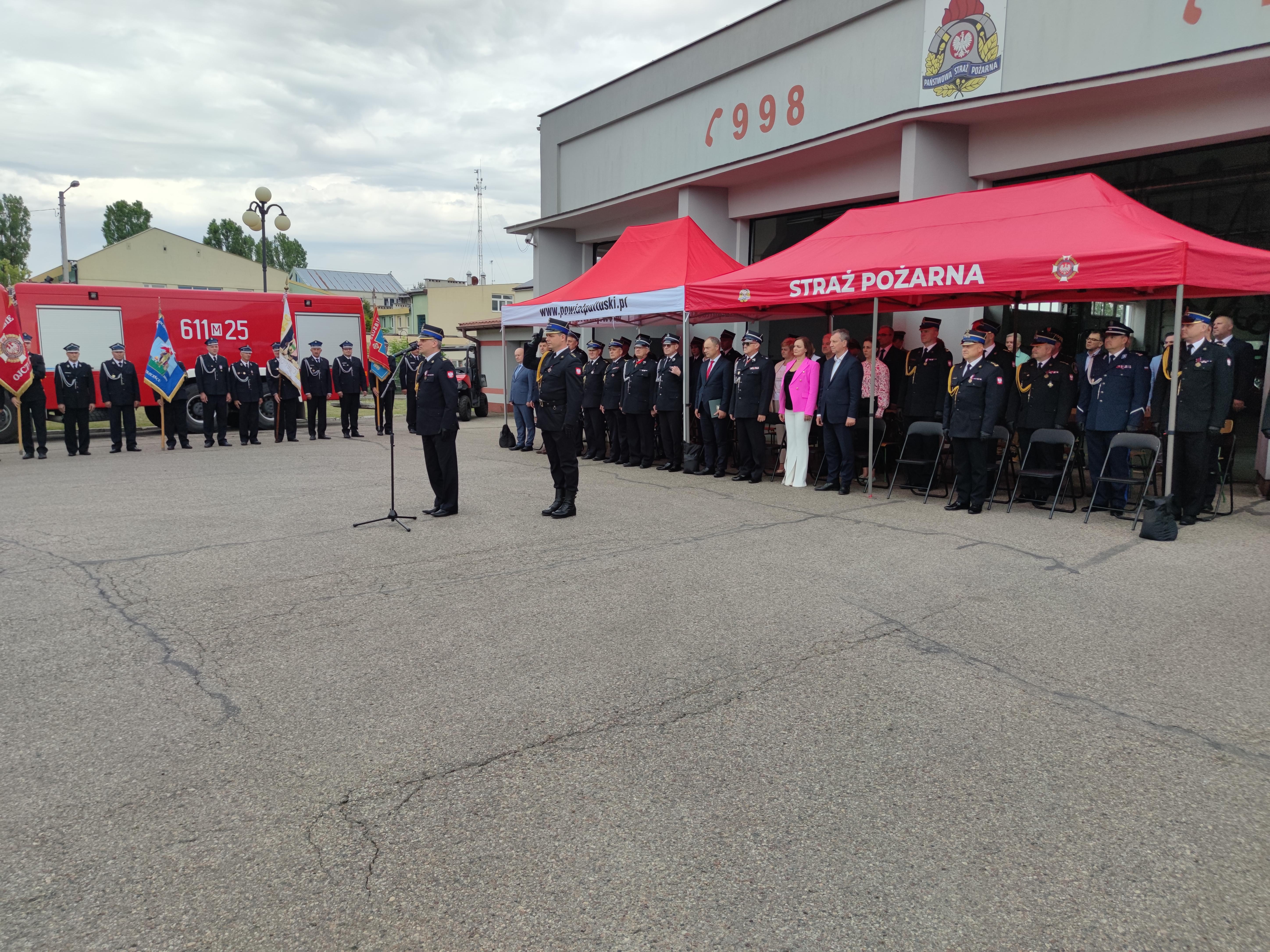 Obchody rozpoczęły się od złożenia meldunku przez dowódcę uroczystości st. kpt. Konrada Chrzanowskiego Zastępcy Mazowieckiego Komendanta Wojewódzkiego PSP bryg. Waldemara Wysowskiego, który dokonał przeglądu pododdziałów i przywitał się z pocztami sztandarowymi. Następnie w trakcie hymnu państwowego, uroczyście podniesiono flagę państwową. Komendant Powiatowy Państwowej Straży Pożarnej w Pułtusku st. bryg. Maciej Piątek przywitał wszystkich gości oraz wygłosił okolicznościowe przemówienie.