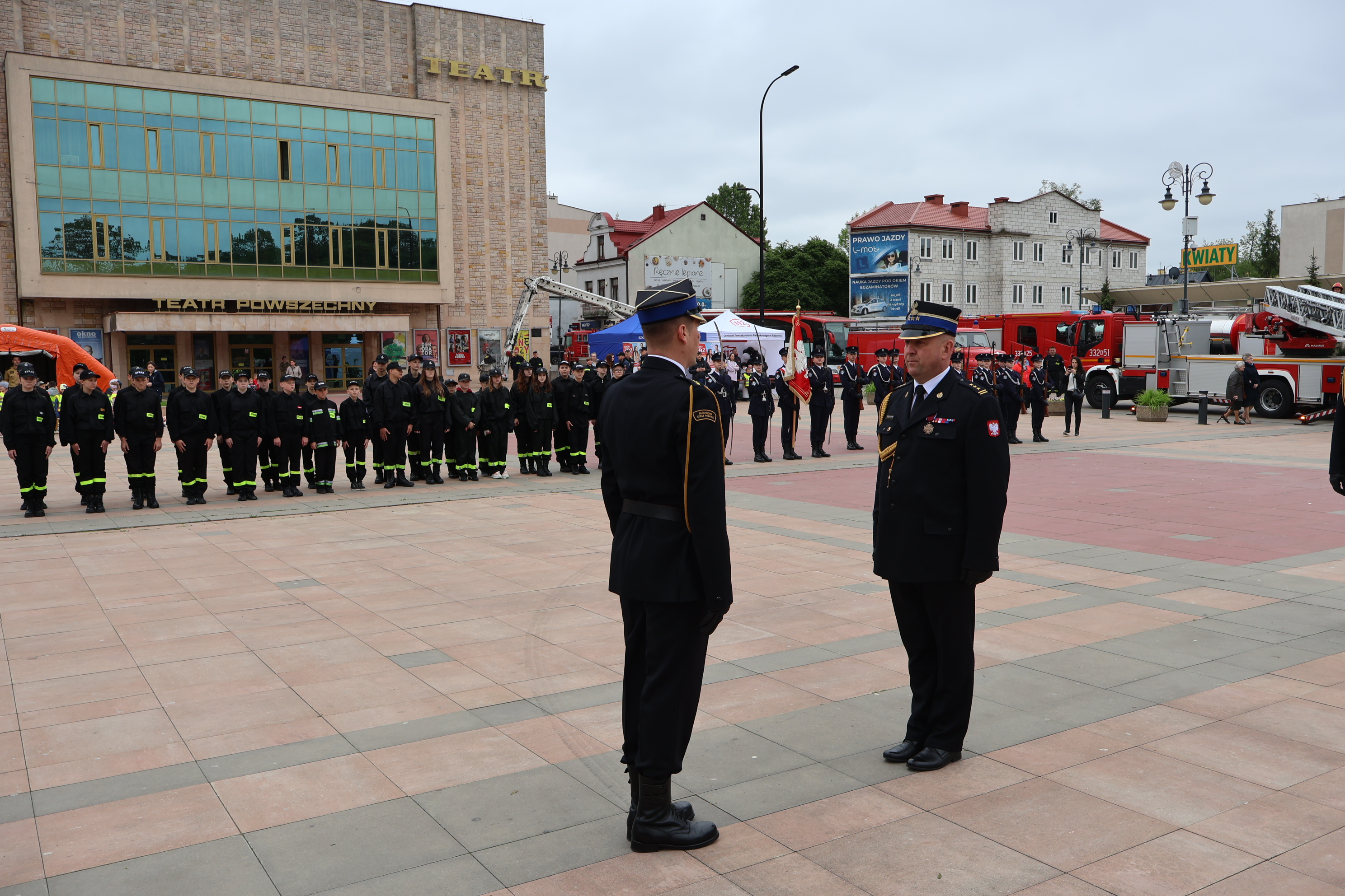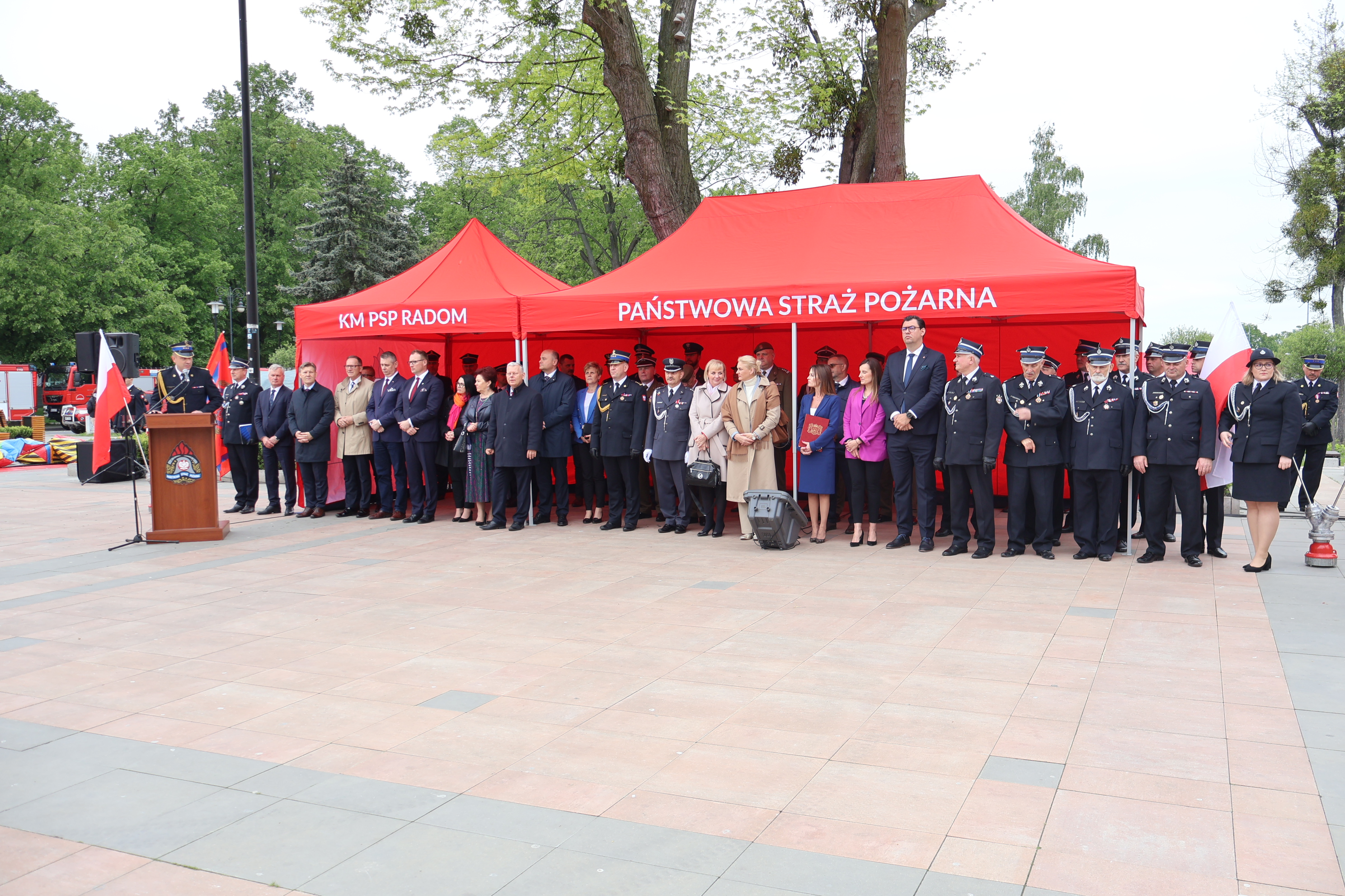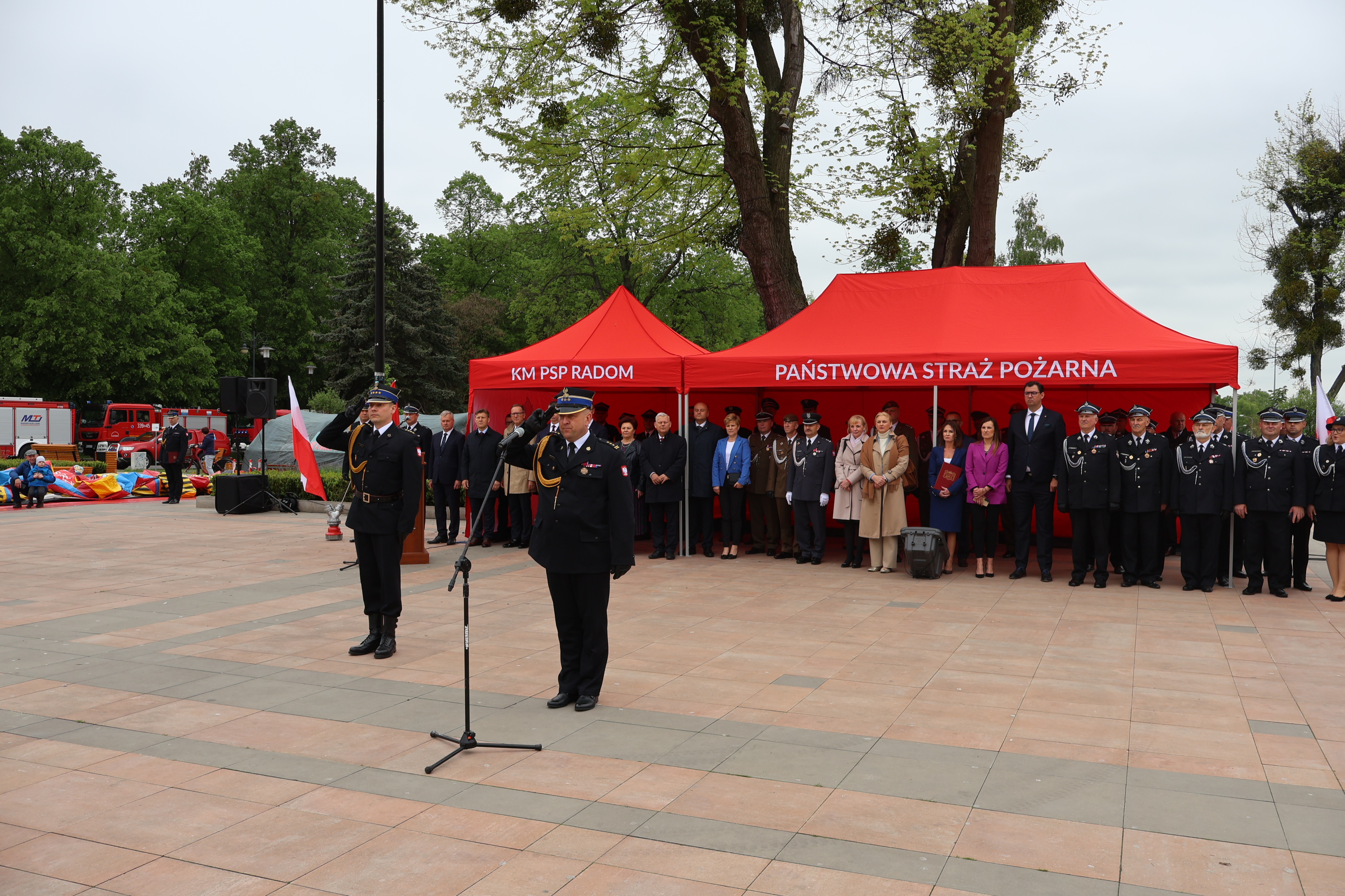 Po przemarszu pododdziałów dowódca uroczystości st. kpt. Damian Becher złożył meldunek Zastępcy Mazowieckiego Komendanta Wojewódzkiego st. bryg. Rafałowi Zimochockiemu. Po podniesieniu flagi państwowej i odegraniu Mazurka Dąbrowskiego, Komendant Miejski Państwowej Straży Pożarnej w Radomiu st. bryg. Bartosz Musiał przywitał uczestników uroczystości.