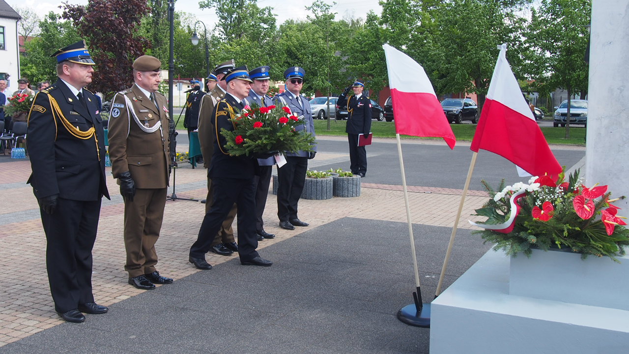 Po nabożeństwie uczestnicy uroczystości przemaszerowali do pobliskiego parku miejskiego pod pomnik Ofiar II Wojny Światowej na dalszą część obchodów. Uroczystość rozpoczęła się złożeniem meldunku Wicemarszałkowi Sejmu RP Piotrowi Zgorzelskiemu, który dokonał przeglądu pododdziałów i powitał poczty sztandarowe. Następnie podniesiono flagę państwową wraz z odegraniem hymnu narodowego.
