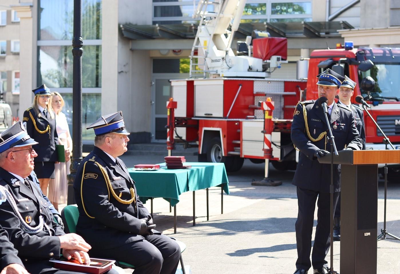 Kolejnym elementem były przemówienia okolicznościowe. Głos zabrał Zastępca Mazowieckiego Komendanta Wojewódzkiego Państwowej Straży Pożarnej st. bryg. Maciej Bieńczyk oraz Starosta Powiatu Żuromińskiego Pan Jerzy Rzymowski, który jednocześnie pełni funkcję Prezesa Oddziału Powiatowego Związku Ochotniczych Straży Pożarnych RP.