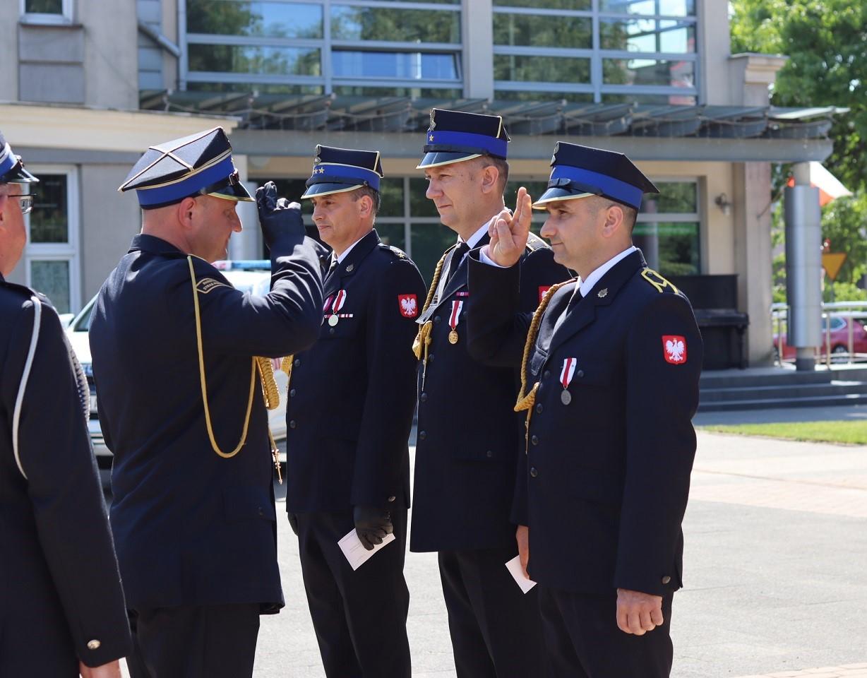 Po przemówieniu Komendanta dokonano wręczenia odznaczeń oraz awansów na wyższe stopnie służbowe z okazji Powiatowych Obchodów Dnia Strażaka.