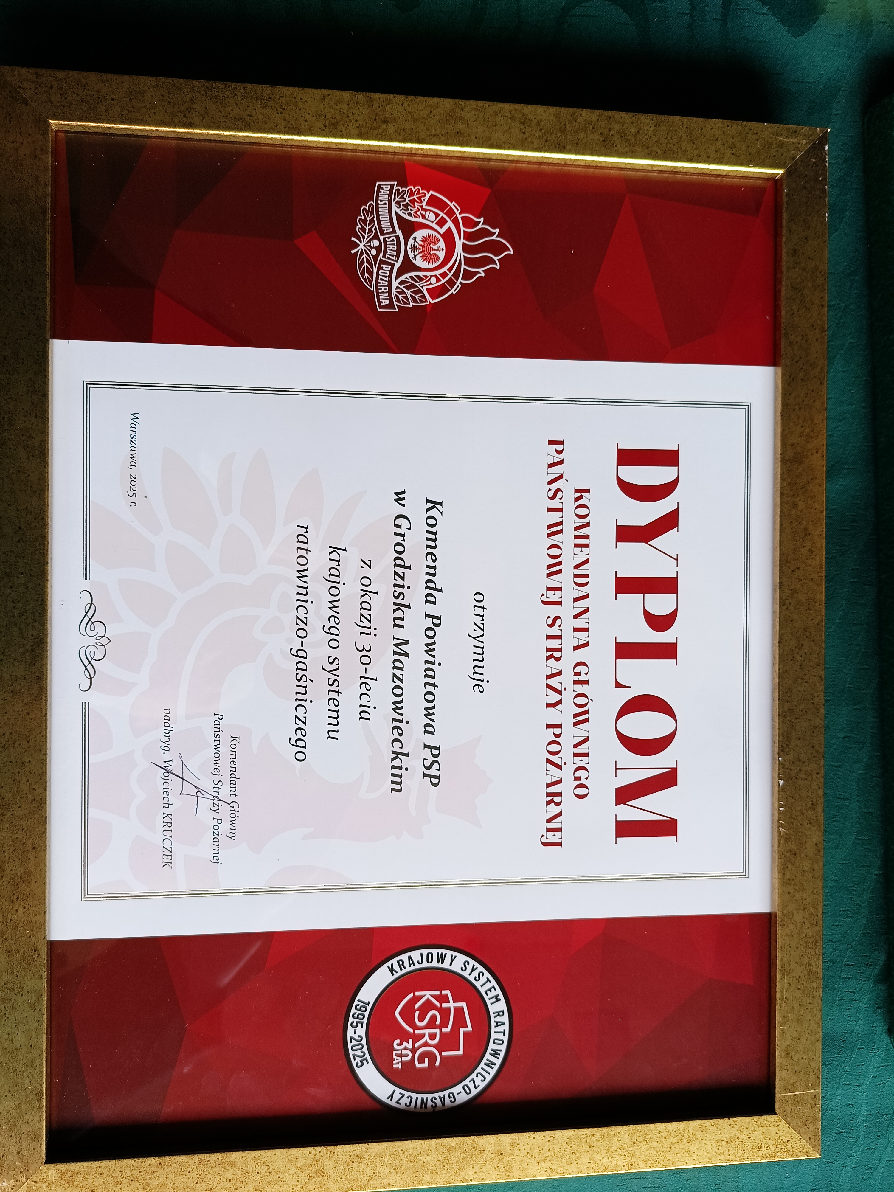 9 maja 2025 roku w siedzibie Komendy Powiatowej Państwowej Straży Pożarnej w Grodzisku Mazowieckim odbył się uroczysty apel z okazji Dnia Strażaka i 30-lecia Krajowego Systemu Ratowniczo Gaśniczego. Uroczystość rozpoczęła się od złożenia meldunku Naczelnikowi Ośrodka Szkolenia Komendy Wojewódzkiej PSP w Warszawie st. bryg. Tomaszowi Musurowi – przedstawicielowi Mazowieckiego Komendanta Wojewódzkiego PSP. Dla podkreślenia wagi uroczystości odegrany został hymn państwowy oraz podniesiona została na maszt flaga państwowa.