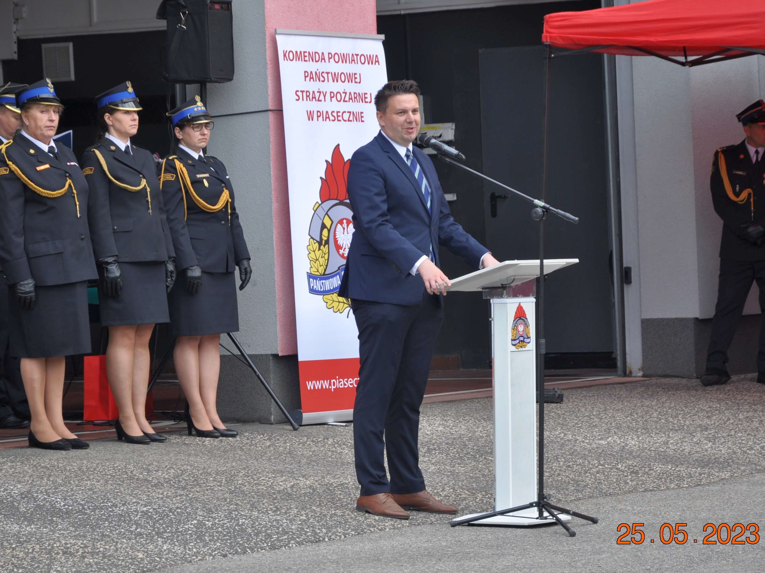 25 maja 2023 roku w Komendzie Powiatowej Państwowej Straży Pożarnej w Piasecznie odbył się uroczysty apel z okazji Dnia Strażaka. Gości, funkcjonariuszy, pracowników i druhów Ochotniczych Straży Pożarnych zebranych na placu przed komendą powitał st. bryg. Leszek Szcześniak – Komendant Powiatowy Państwowej Straży Pożarnej w Piasecznie.
