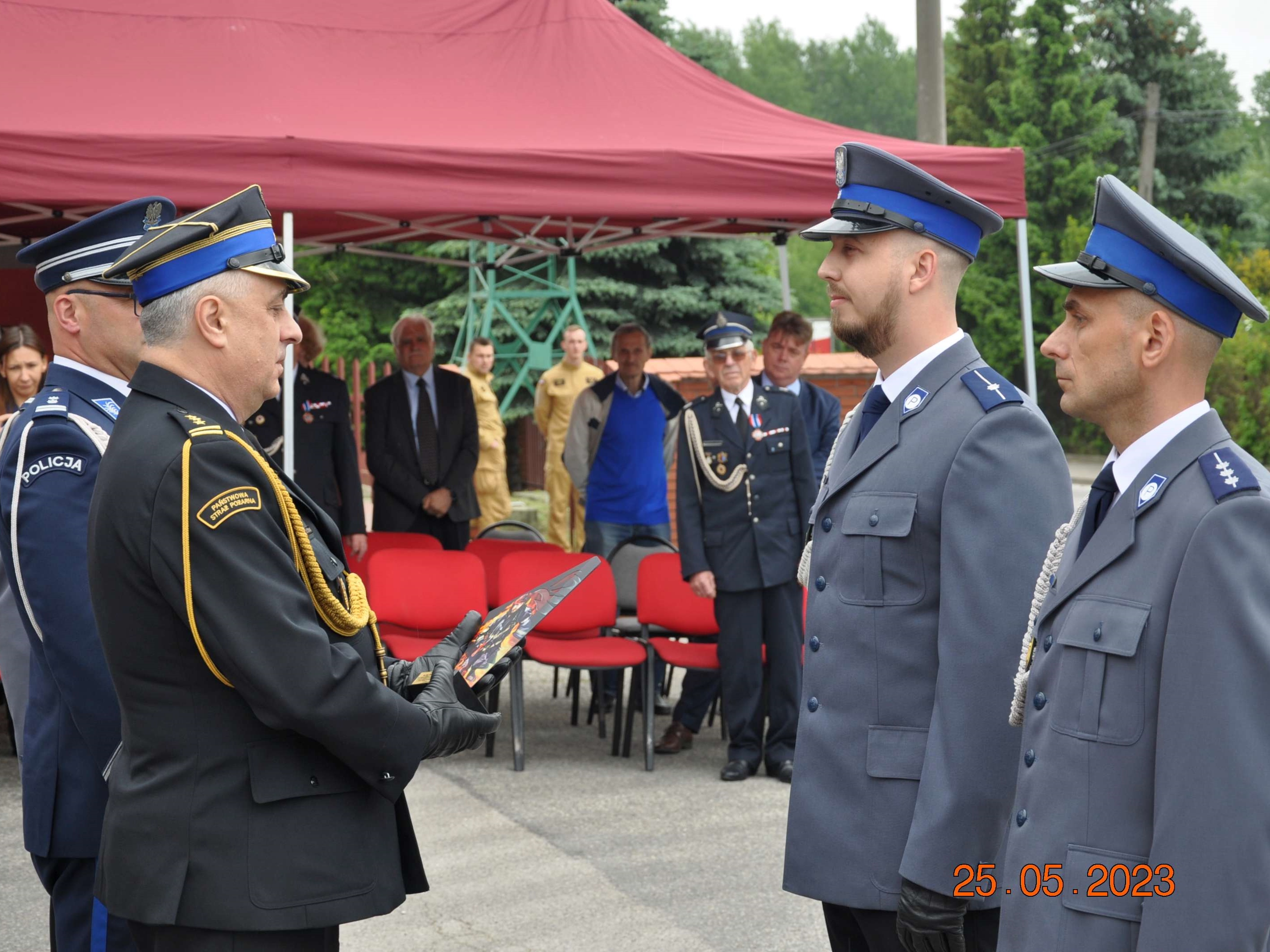 W trakcie uroczystości Komendant Powiatowy Państwowej Straży Pożarnej w Piasecznie wyróżnił okolicznościową statuetką dwóch funkcjonariuszy Policji. 15 kwietnia br. kiedy doszło do pożaru w pomieszczeniu technicznym jednego z budynków Domu Pomocy Społecznej w Górze Kalwarii na miejsce jako pierwsi dotarli policjanci z Komisariatu Policji w Górze Kalwarii. Zdołali oni ustalić, w którym pomieszczeniu doszło do pożaru i pomimo silnego zadymienia podjęli próbę jego ugaszenia przy pomocy gaśnic. Ich działania spowodowały opóźnienie rozwoju pożaru co pozwoliło na wydłużenie czasu bezpiecznej ewakuacji pensjonariuszy. W wyniku zdarzenia nikt z mieszkańców domu nie został poszkodowany.