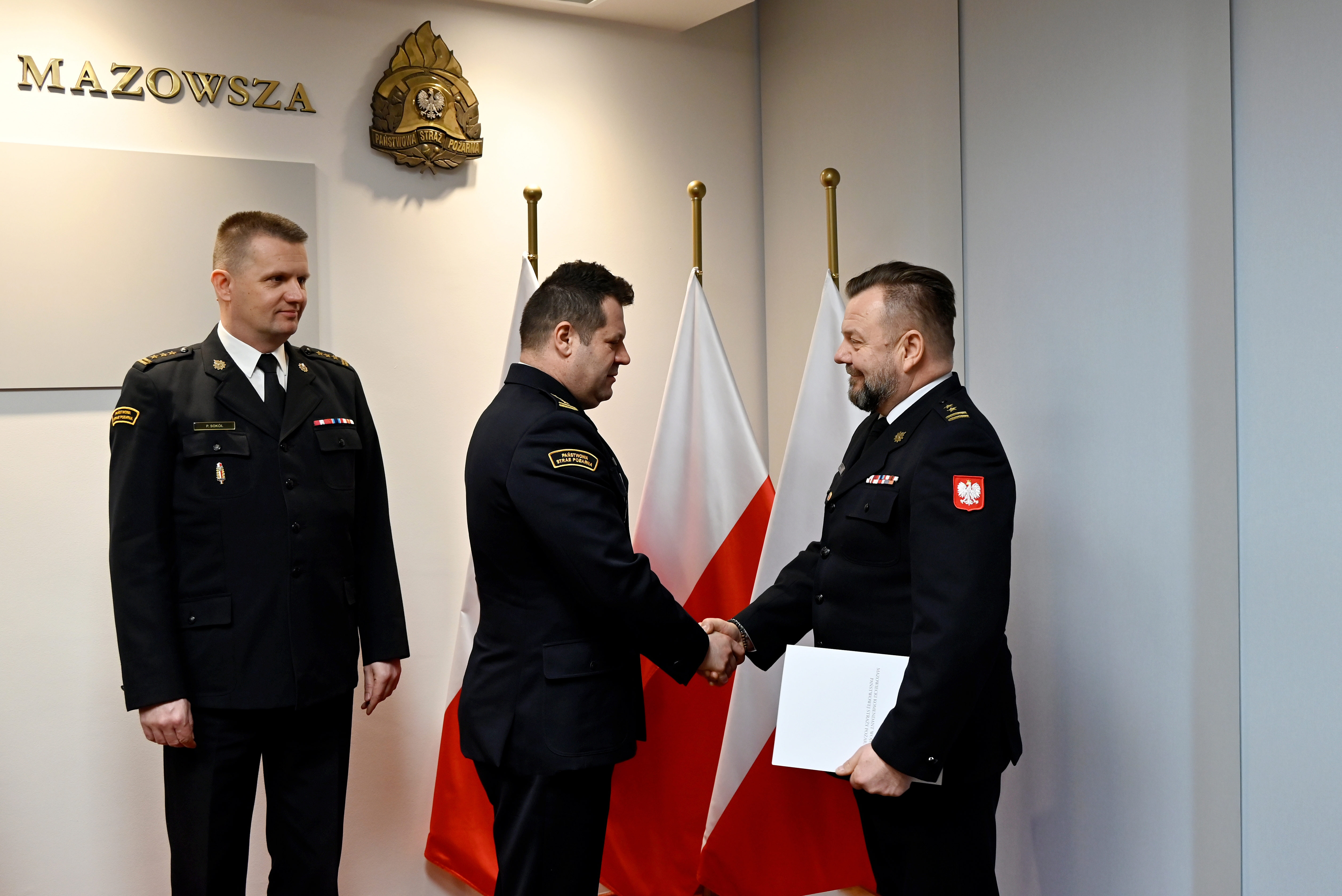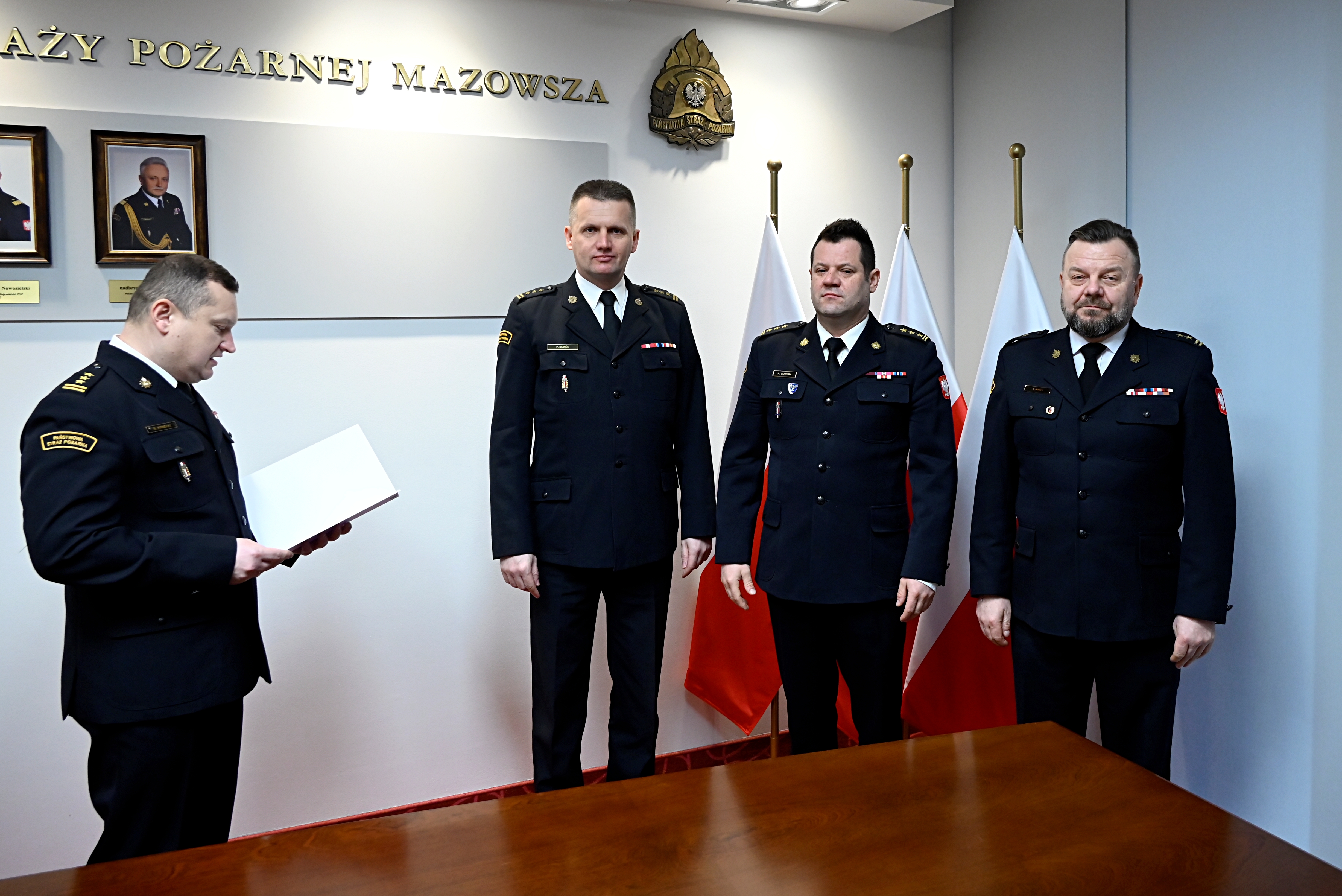 Uroczyste wręczenie decyzji personalnej odbyło się 15 lutego 2024 roku w siedzibie Komendy Wojewódzkiej PSP w Warszawie w obecności Komendanta Powiatowego PSP w Szydłowcu st. bryg. Pawła Sokół oraz st. bryg. Marcina Koneckiego, Naczelnika Wydziału Kadr KW PSP.