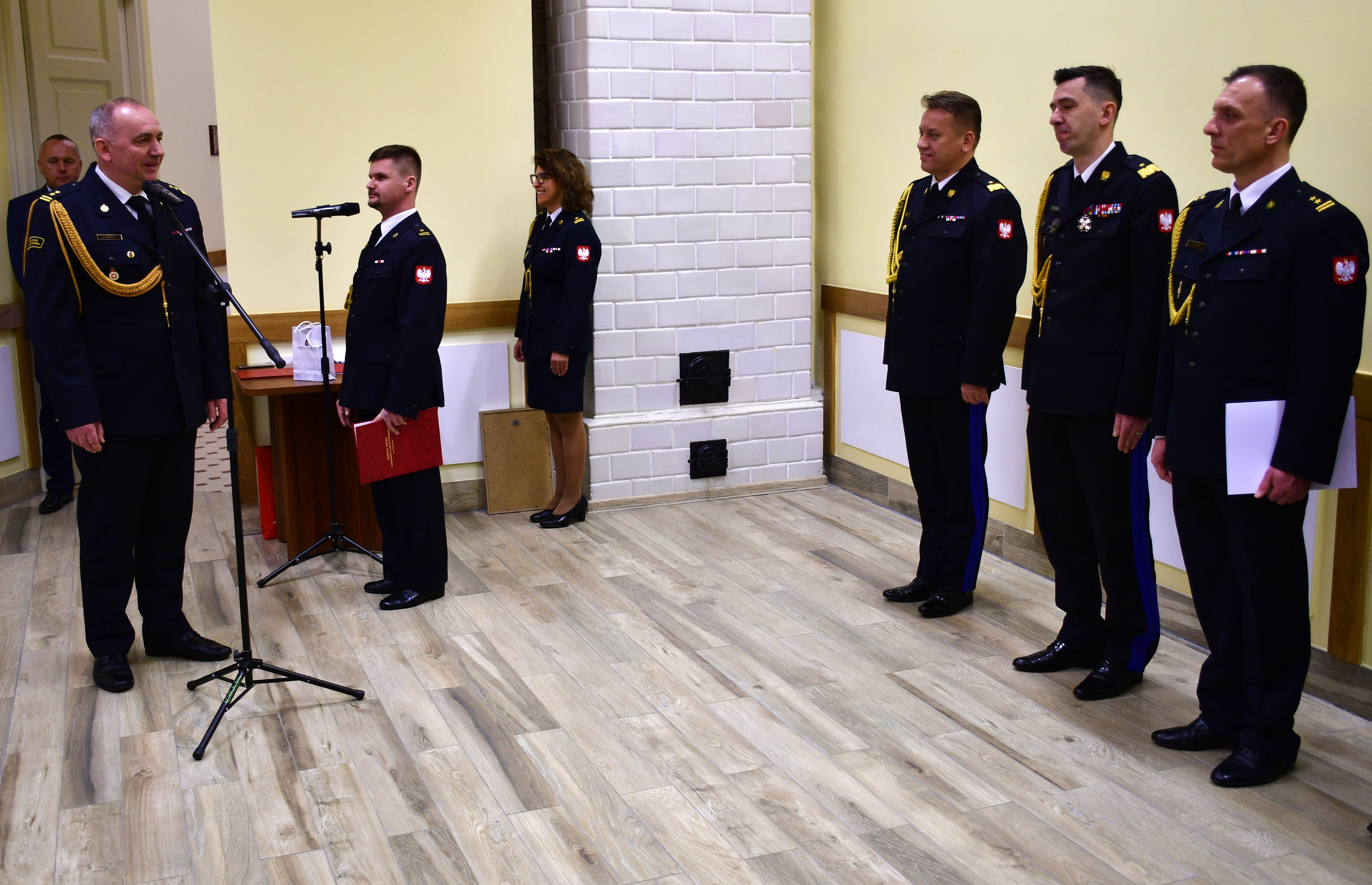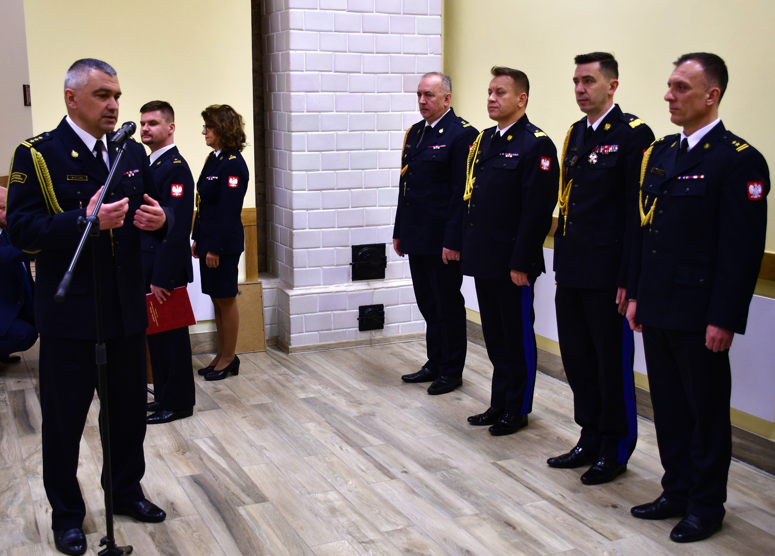Ponadto akt mianowania na stanowisko Dowódcy Jednostki Ratowniczo - Gaśniczej nr 4 odebrał mł. bryg. Dominik Leśniakiewicz, a mł. bryg. Robert Wronka odebrał akt mianowania na stanowisko Zastępcy Naczelnika Wydziału Kadrowego.