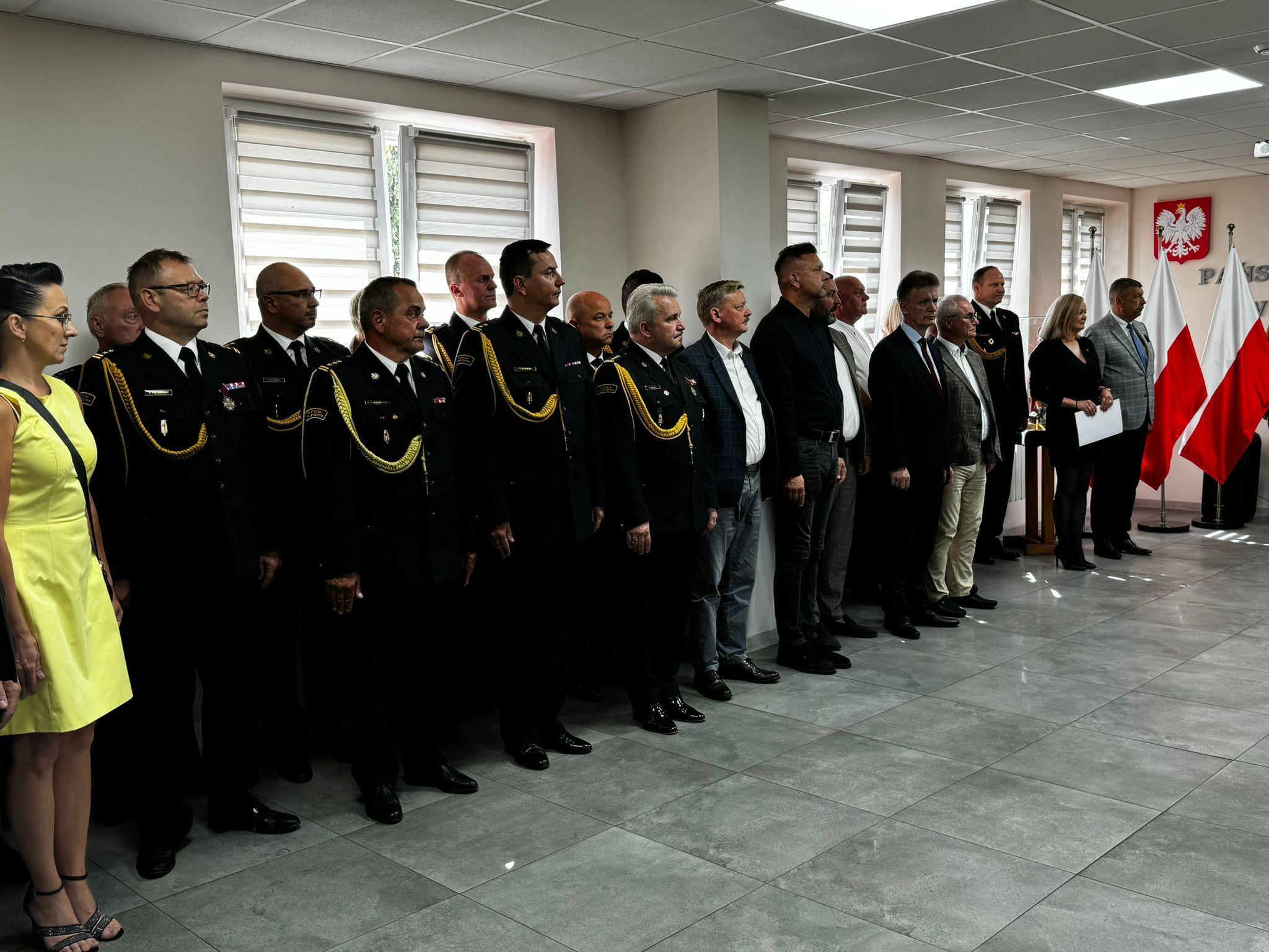 Uroczystość rozpoczęła się od złożenia meldunku Mazowieckiemu Komendantowi Wojewódzkiemu Państwowej Straży Pożarnej nadbryg. Arturowi Gonerze przez dowódcę uroczystości st. kpt. Patryka Obidzińskiego. Następnie wprowadzono sztandar Komendy Powiatowej PSP w Makowie Mazowieckim oraz odśpiewano hymn państwowy.