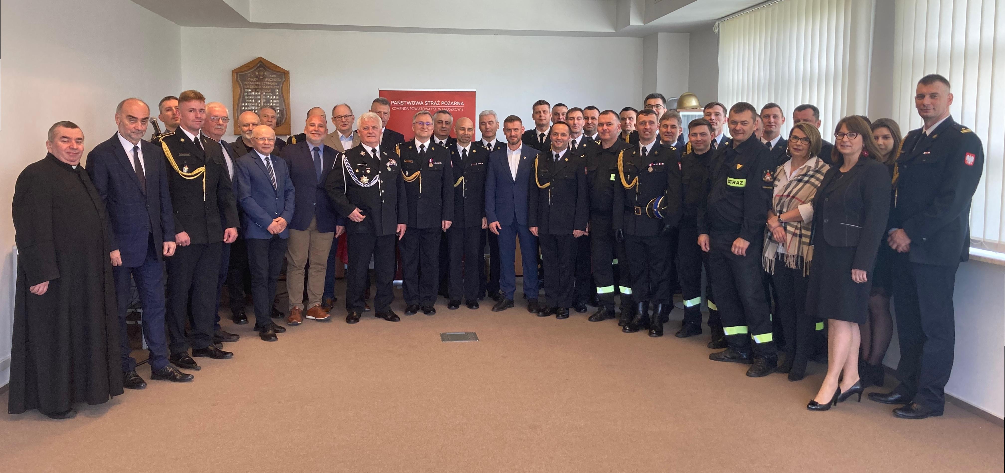W uroczystości uczestniczyli również: Prezes ZOP ZOSP RP w Pruszkowie druh Jacek Gromek, ks. Krzysztof Gołębiewski – kapelan pruszkowskich strażaków, przedstawiciele władz samorządowych, instytucji, strażacy i pracownicy cywilni oraz wielu przyjaciół KP PSP w Pruszkowie.