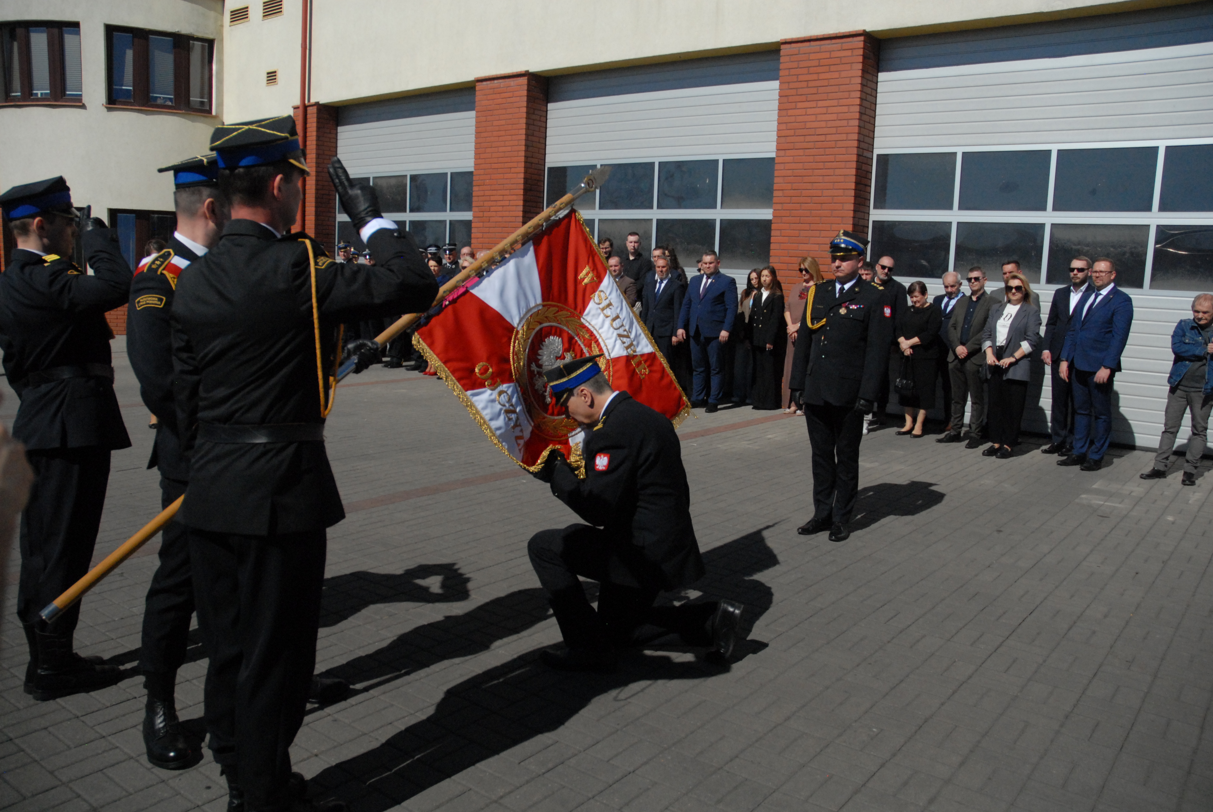 Następnie na miejsce uroczystości wprowadzony został sztandar Komendy Powiatowej PSP w Sierpcu, po czym odegrano hymn Rzeczypospolitej Polskiej.
