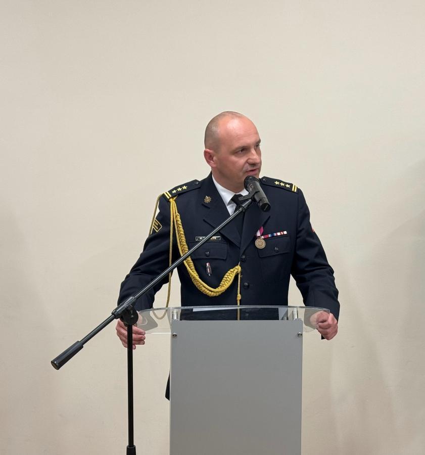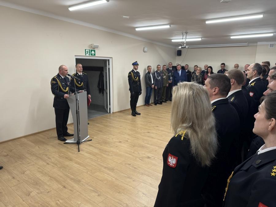 Zastępca Mazowieckiego Komendanta Wojewódzkiego PSP przedstawił przebieg służby st. kpt. Rafała Krupy powołanego na stanowisko Komendanta Powiatowego PSP w Sochaczewie, podkreślając jego kwalifikacje zawodowe.