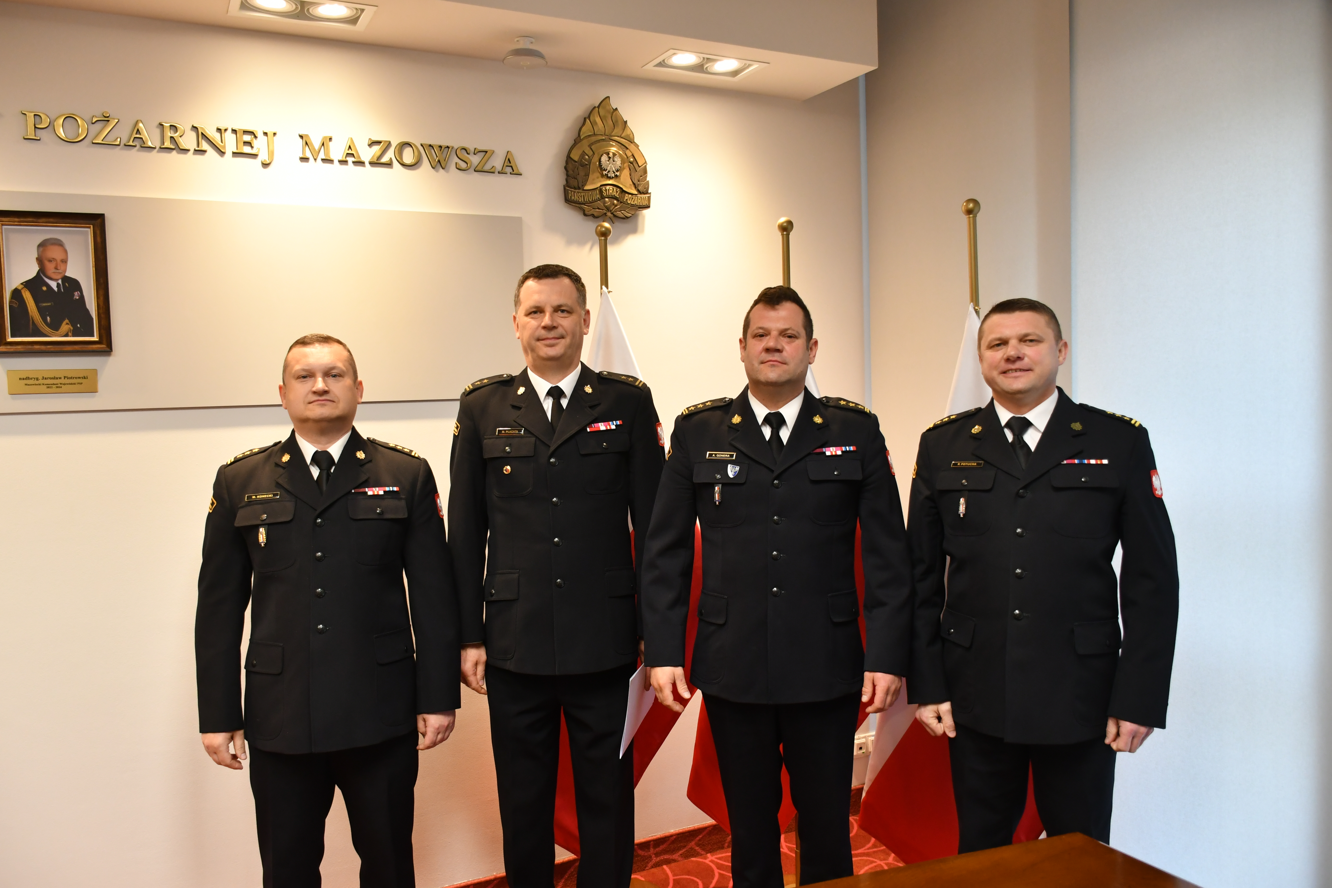 Uroczyste wręczenie decyzji personalnej odbyło się w siedzibie Komendy Wojewódzkiej PSP w Warszawie w obecności st. bryg. Pawła Potuchy - Komendanta Powiatowego PSP w Zwoleniu oraz st. bryg. Marcina Koneckiego - Naczelnika Wydziału Kadr KW PSP w Warszawie.