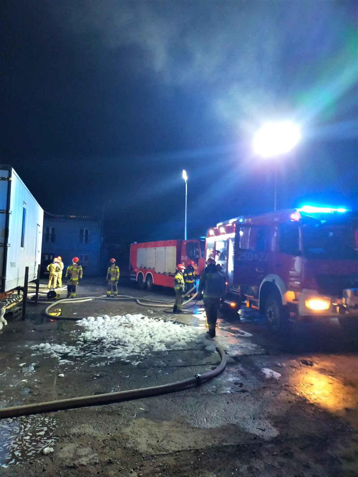 Zadysponowane zostały jednostki PSP, które po dotarciu na miejsce zdarzenia zastały rozwinięty pożar w środkowej części hali magazynowej, w której znajdowały się zbiorniki z substancjami chemicznymi.