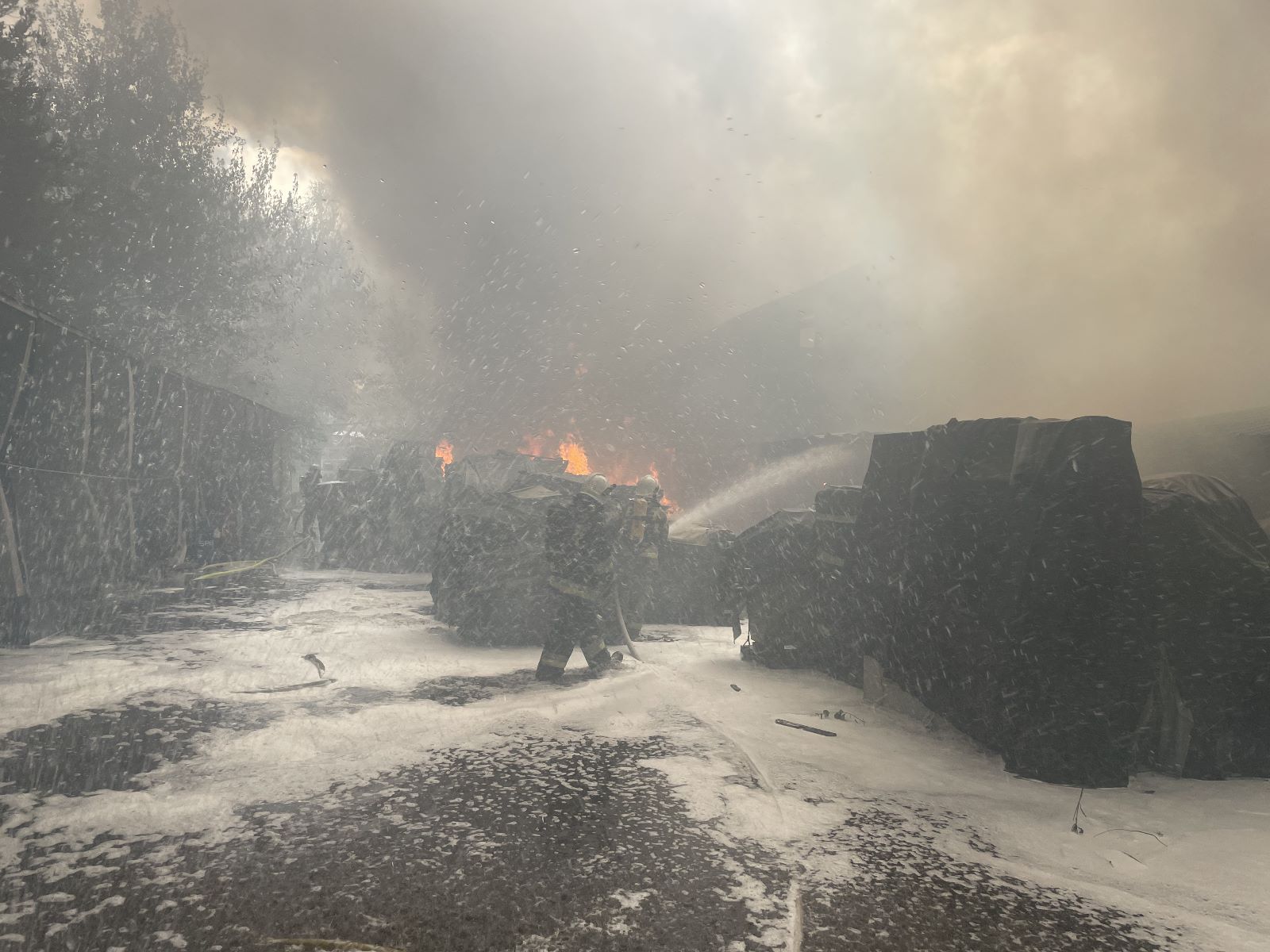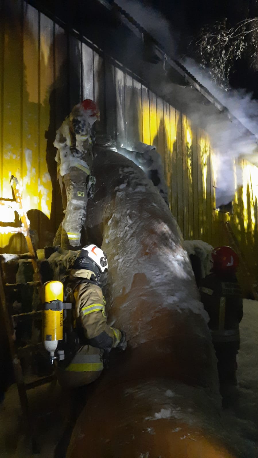 Pożar rozwijał się szybko, niebawem ogniem objęty został dach budynku, a następnie parter. Działania strażaków polegały na podawaniu prądów wody oraz piany gaśniczej w natarciu na palący się budynek oraz podawaniu prądów wody w obronie na budynki sąsiednie, aby zapobiec rozprzestrzenieniu się ognia. Utrudnieniem podczas prowadzonych działań był porywisty wiatr, silne zadymienie, które ograniczało widoczność, a także ilość, charakter i rodzaj materiałów składowanych w hali. Ze względu na osłabioną konstrukcję budynku (oddziaływanie wysokiej temperatury), utrudnione było wejście ratowników do jego wnętrza.
