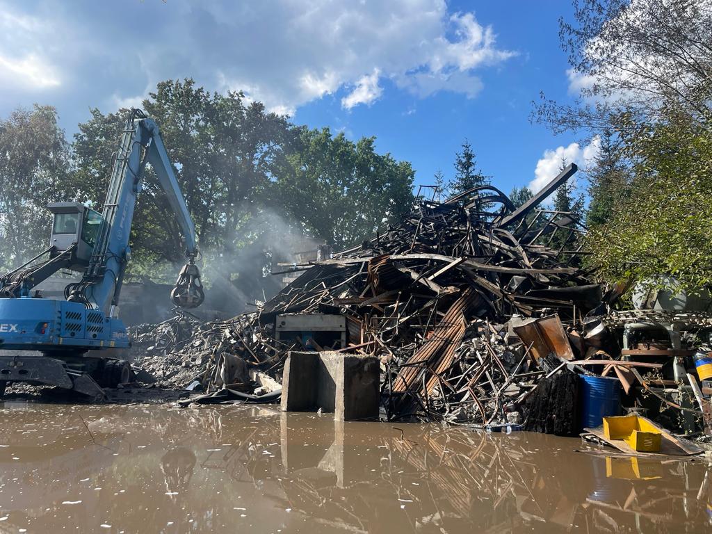 Działania związane z dogaszaniem pożaru możliwe były dzięki wykorzystaniu ciężkiego sprzętu burzącego.