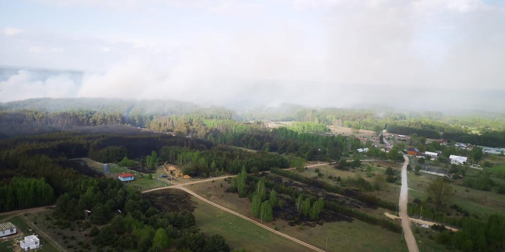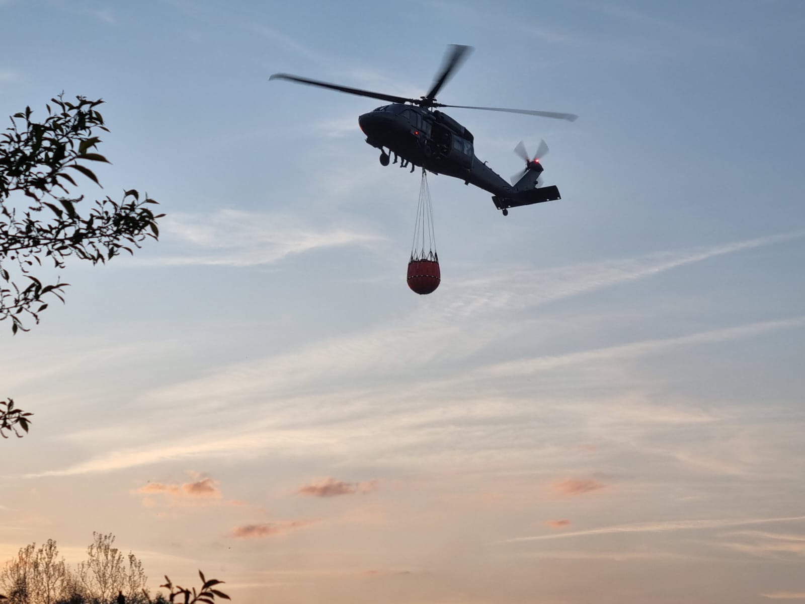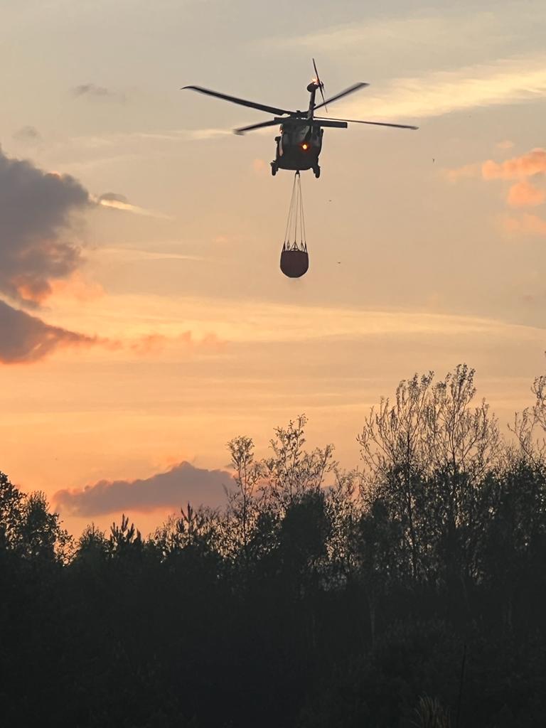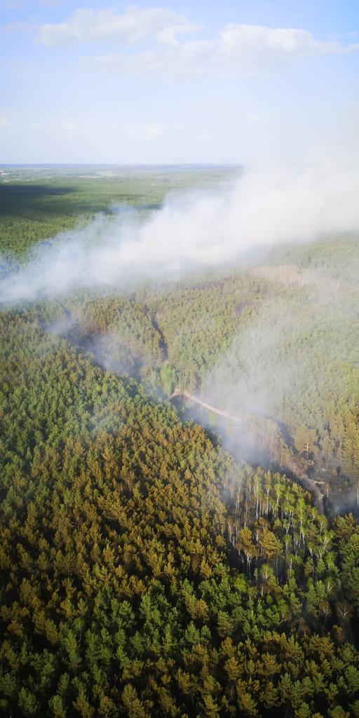 Działania prowadzone przez strażaków wspomagane były 19 zrzutami wody ze śmigłowca Policji przy użyciu zbiornika Bambi bucket o pojemności 3000 litrów oraz 37 zrzutów z samolotów gaśniczych Lasów Państwowych. W śmigłowcu prowadzili działania ratownicy wysokościowi z JRG nr 7 KM PSP m.st. Warszawy, którzy dokonywali zrzutu wody w wyznaczone miejsca pożaru.