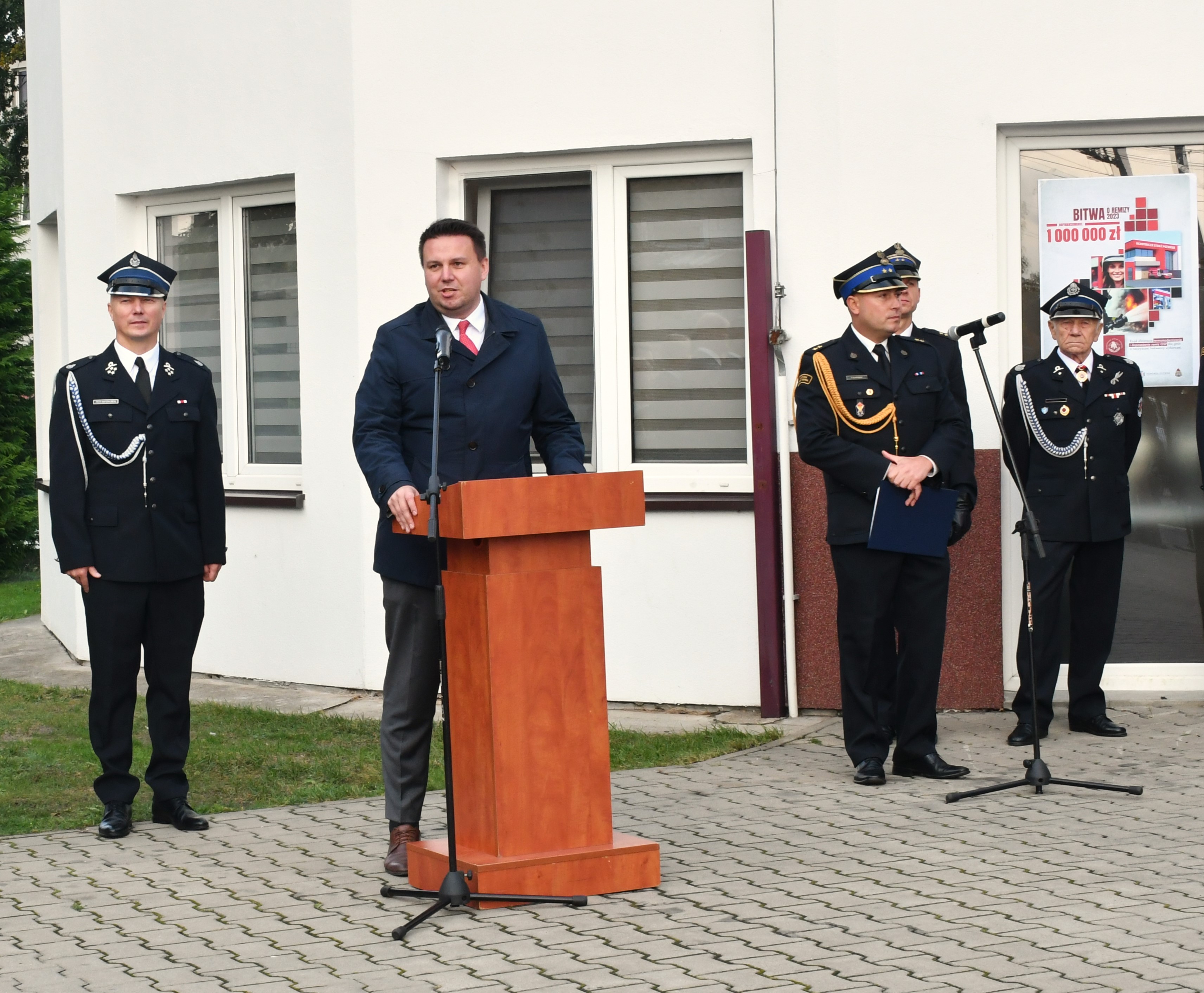 Przedstawił również informacje o akcji „Bitwa o Remizy”, której celem jest zachęcenie społeczeństwa do pójścia na wybory i wzięcia udziału w głosowaniu, po to, żeby umocnić polską demokrację i żeby wspomóc lokalne jednostki OSP. Jest to program Ministerstwa Spraw Wewnętrznych i Administracji oraz Ministerstwa Klimatu i Środowiska, w którym przeznaczono 1 mln na remizy w każdym powiecie dla gminy (do 20 tys. mieszkańców), która uzyska najwyższą frekwencję w wyborach do Sejmu i Senatu. W sumie do jednostek OSP z tego programu trafi ponad 300 mln zł na ich modernizację i doposażenie. Strażacy sami zdecydują na co chcą przeznaczyć te środki w danej gminie. To ogromne wsparcie dla jednostek Ochotniczych Straży Pożarnych!