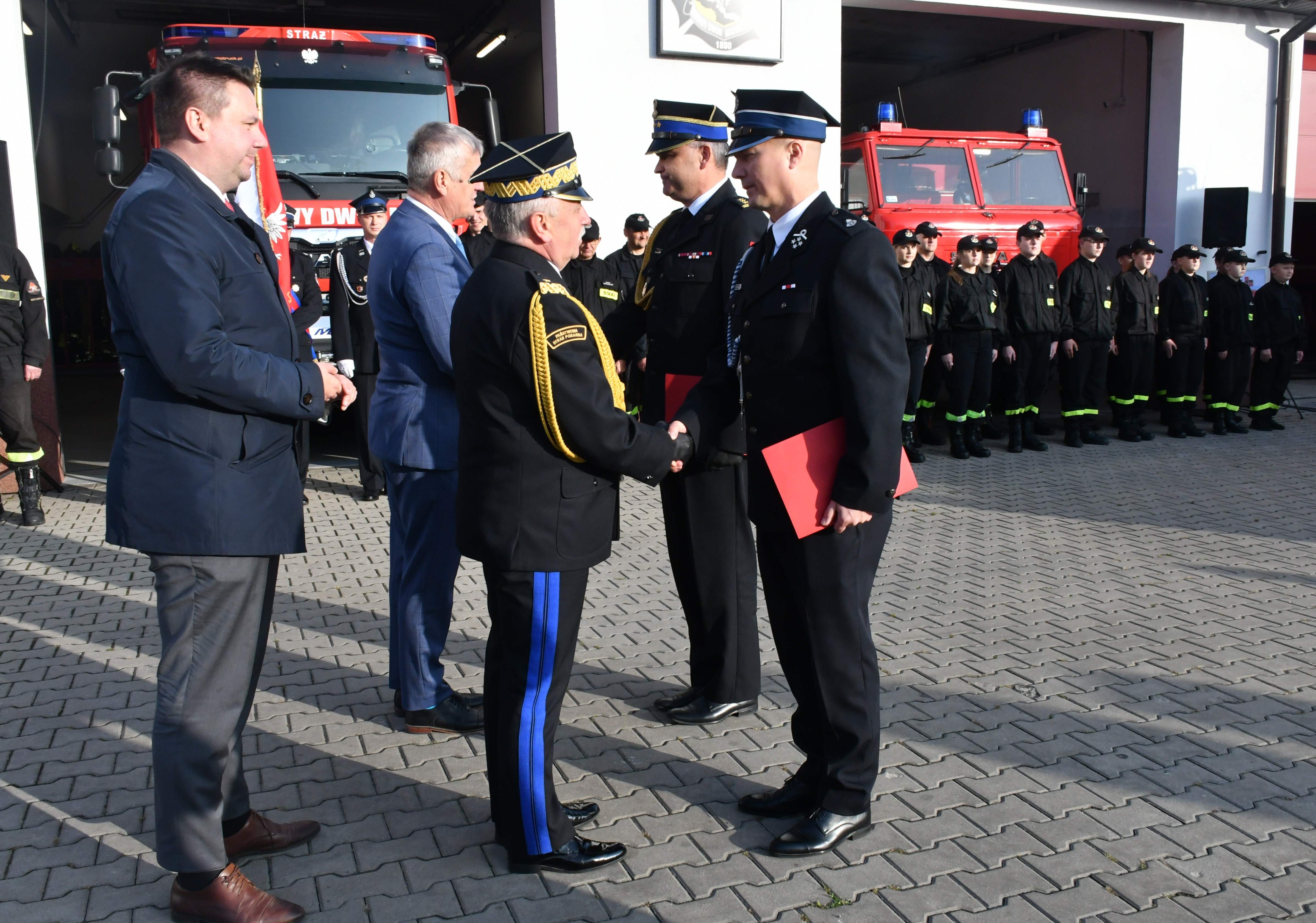 Na zakończenie uroczystego apeli głos zabrali zaproszeni Goście, którzy podczas przemówień okolicznościowych podkreślali rolę, jaką pełnią jednostki ochrony przeciwpożarowej w systemie bezpieczeństwa. Serdecznie gratulowali funkcjonariuszom oraz druhom pozyskania nowych pojazdów oraz złożyli podziękowania za ich bezinteresowność w niesieniu pomocy drugiemu człowiekowi i sumienną pracę na rzecz zapewniania bezpieczeństwa.