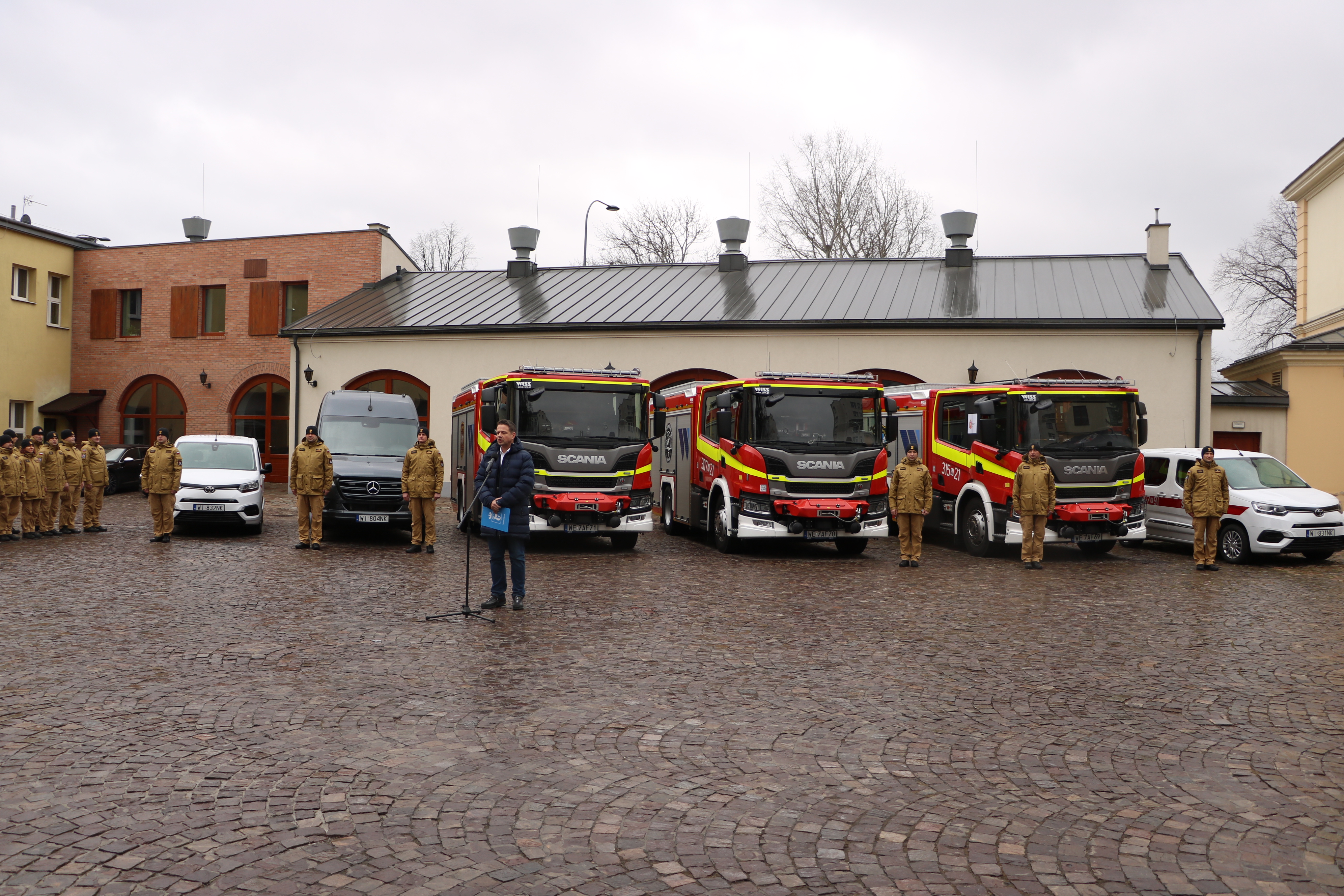 21 lutego 2024 roku na placu wewnętrznym JRG 5 Komendy Miejskiej PSP m.st. Warszawy odbyła się uroczysta zbiórka z okazji przekazania samochodów pożarniczych dla warszawskich jednostek PSP.