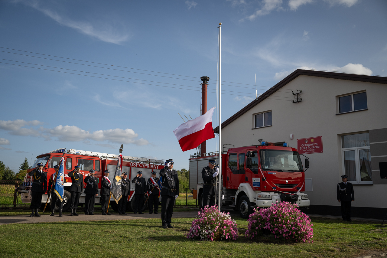 30 września 2023 roku przed strażnicą Ochotniej Straży Pożarnej w Cyprianach odbył się uroczysty apel z okazji przekazania samochodu ratowniczo-gaśniczego GBA 2,5/24 marki Renault Midlum oraz otwarcia zmodernizowanej strażnicy.