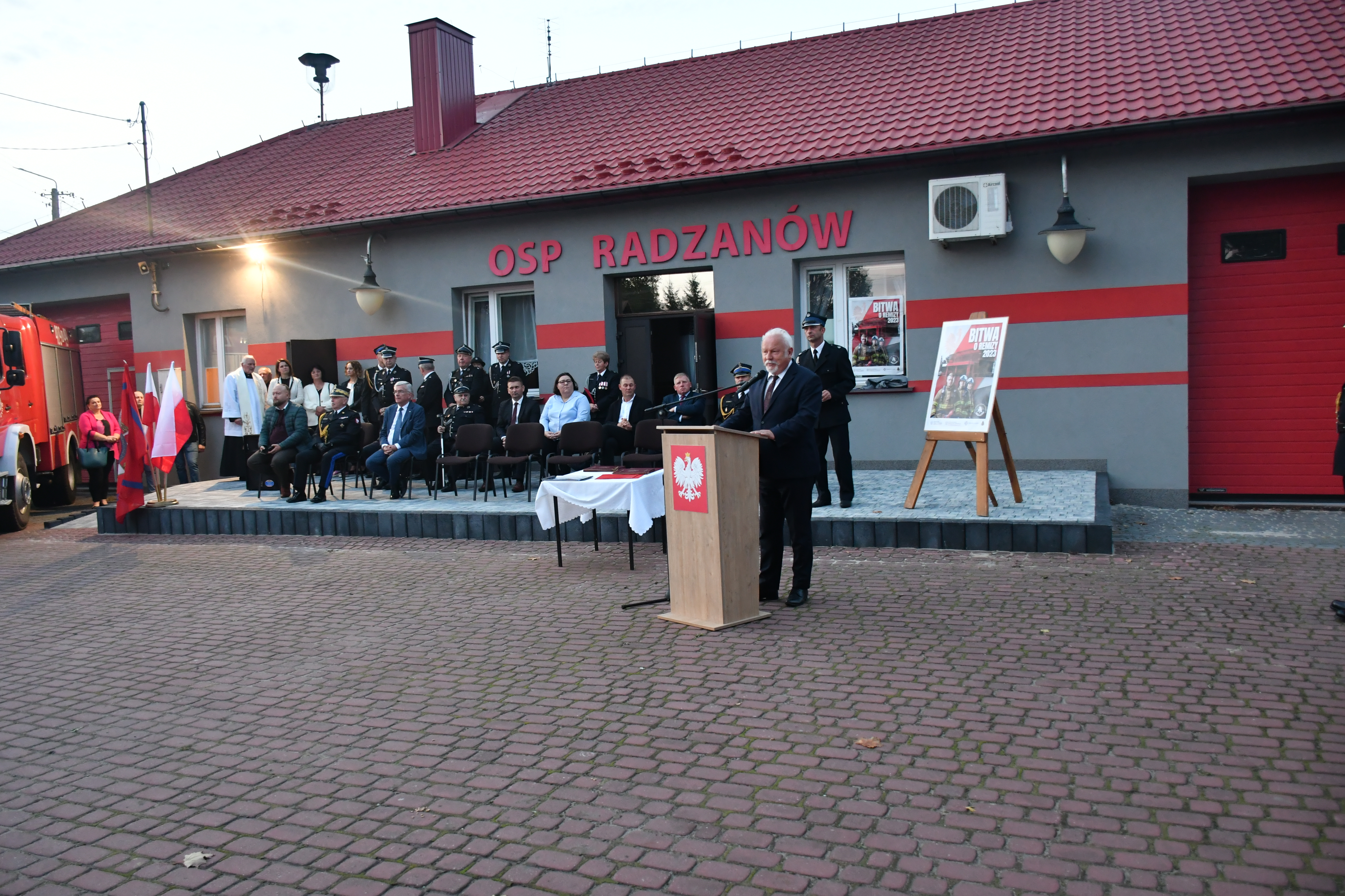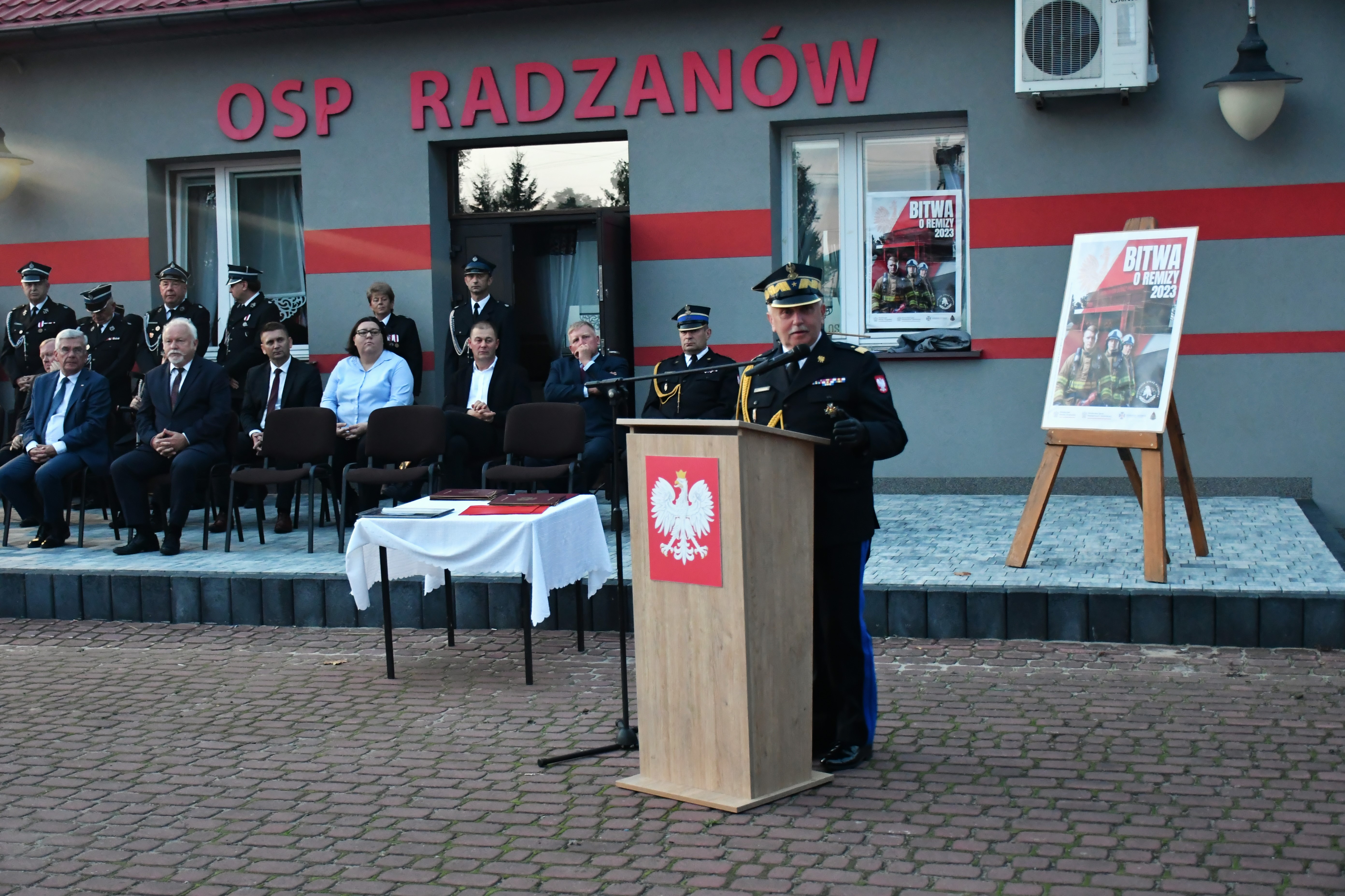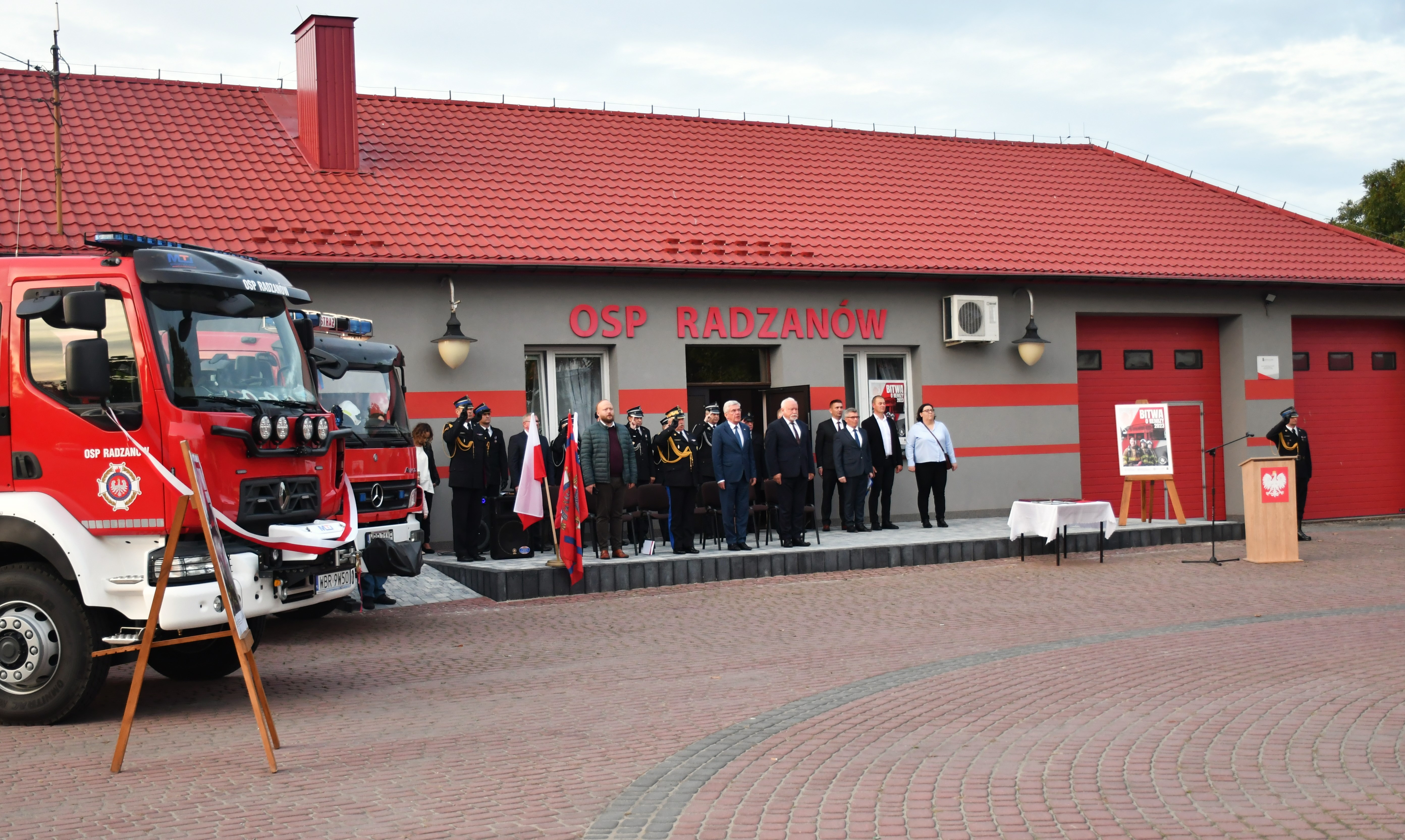 11 października 2023 roku na placu przed jednostką Ochotniczej Straży Pożarnej w Radzanowie (powiat białobrzeski) odbył się uroczysty apel, podczas którego przekazano średnie samochody ratowniczo-gaśnicze dla jednostek OSP w Radzanowie i Bukównie.