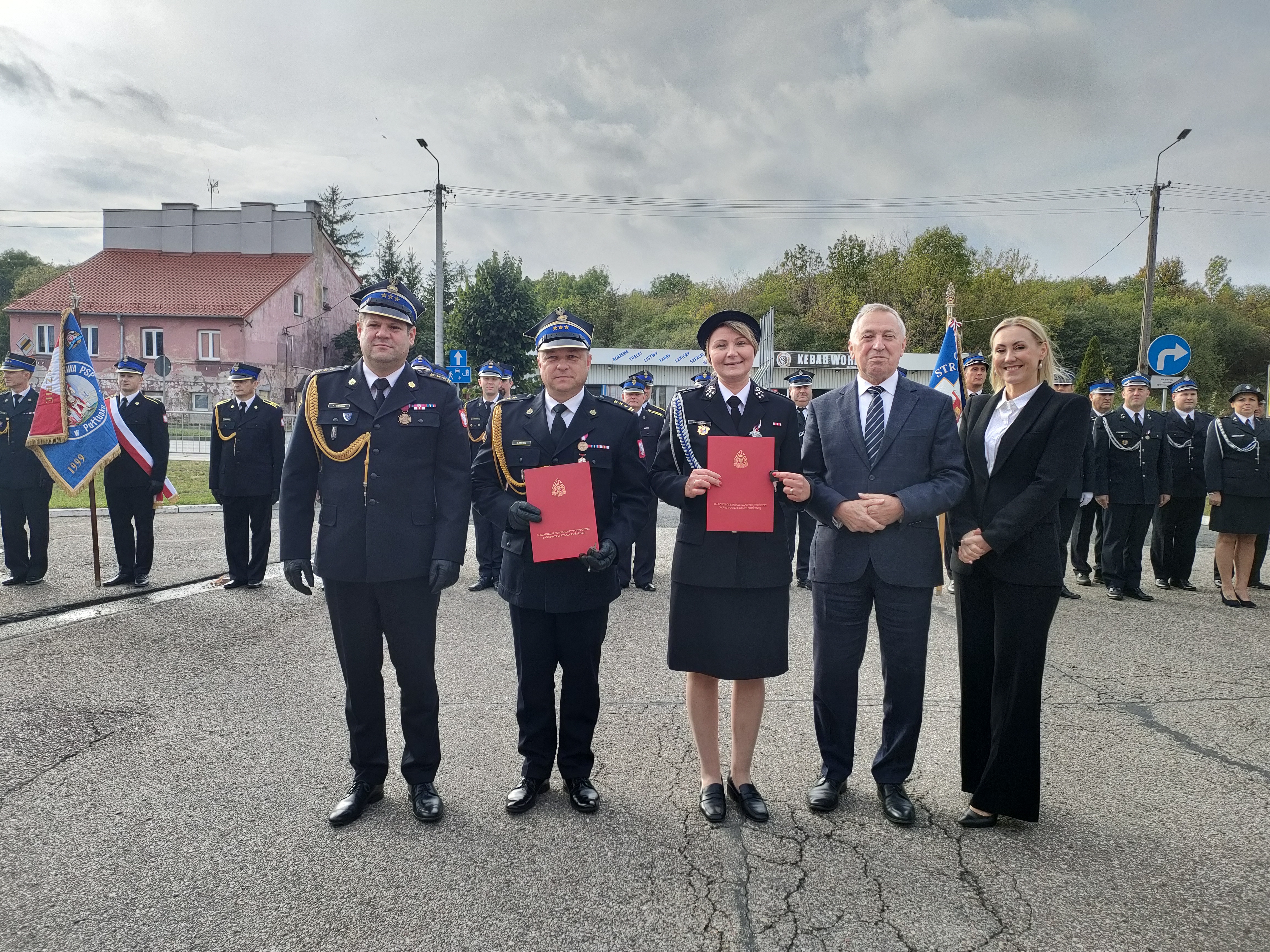 Zastępca Mazowieckiego Komendanta Wojewódzkiego st. bryg. Artur Gonera wraz z Ministrem Henrykiem Kowalczykiem oraz Panią Kamilą Mokrzycką Zastępcą Prezesa Zarządu WFOŚiG w Warszawie wręczyli: