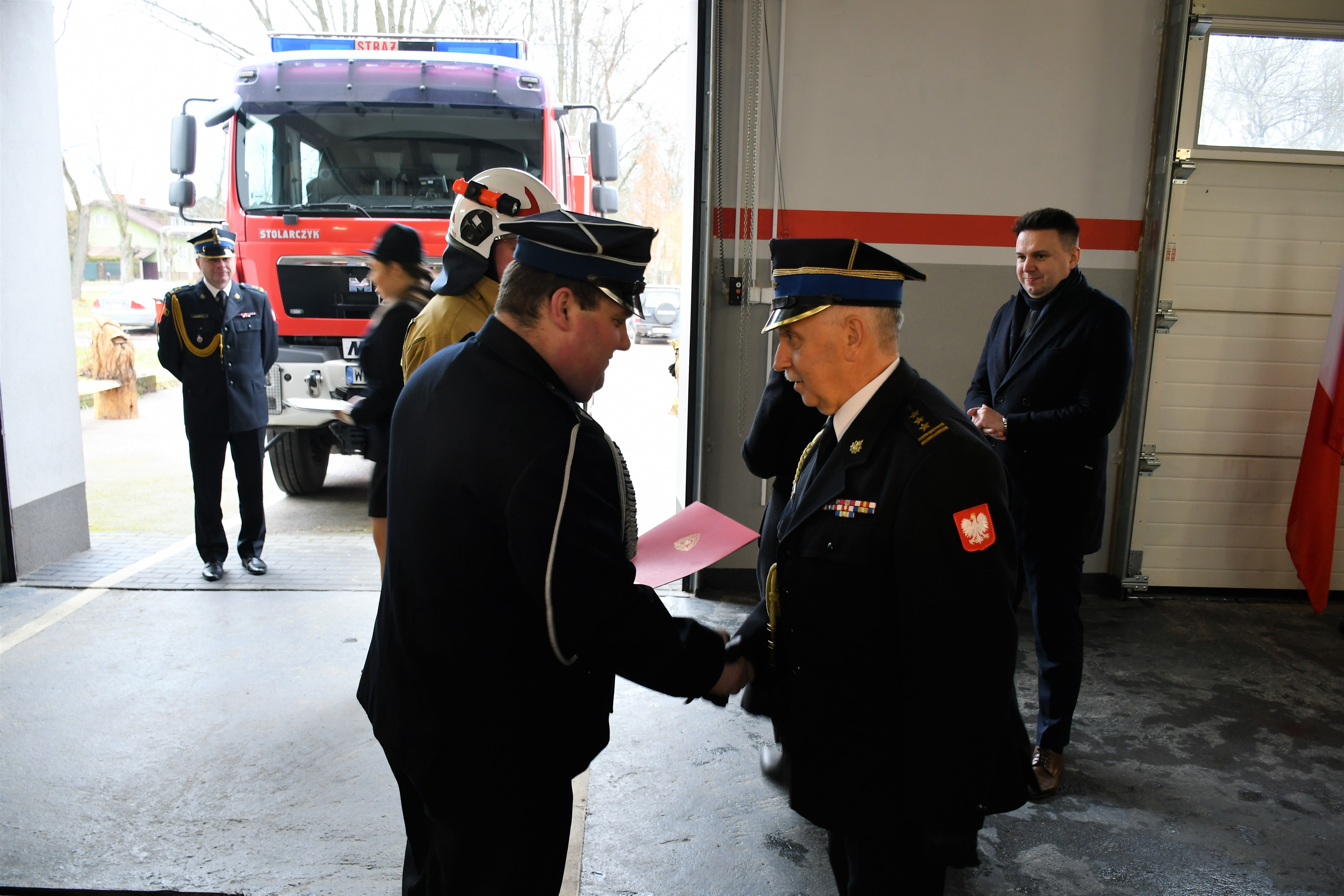 W trakcie okolicznościowych przemówień podziękowano za zaangażowanie na rzecz ochrony przeciwpożarowej na terenie miejscowości, życząc dalszych sukcesów na kolejne lata działalności. Mazowiecki Komendant Wojewódzki PSP – st. bryg. Jarosław Piotrowski złożył najlepsze życzenia noworoczne. W uroczystości wystawiono poczet sztandarowy ze sztandarem pochodzącym z 1927 roku.