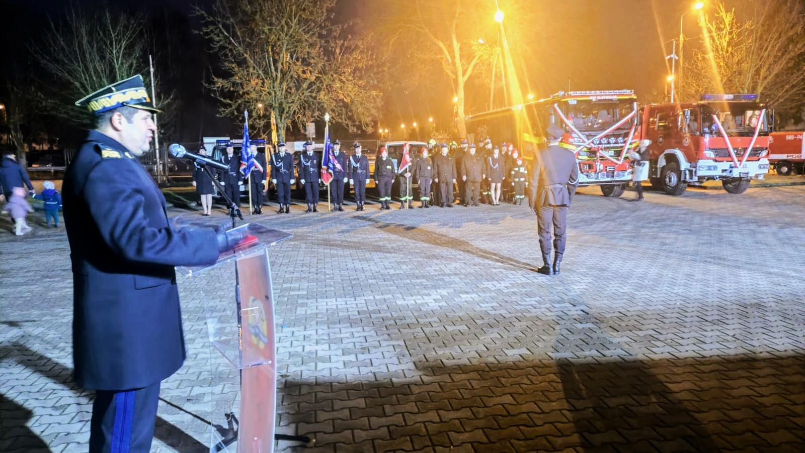 1 grudnia 2025 r. w Ochotniczej Straży Pożarnej w Złotokłosie w gminie Piaseczno, Mazowiecki Komendant Wojewódzki PSP - nadbryg. Artur Gonera wziął udział w uroczystym apelu z okazji pozyskania i przekazania ciężkiego samochodu ratowniczo-gaśniczego.