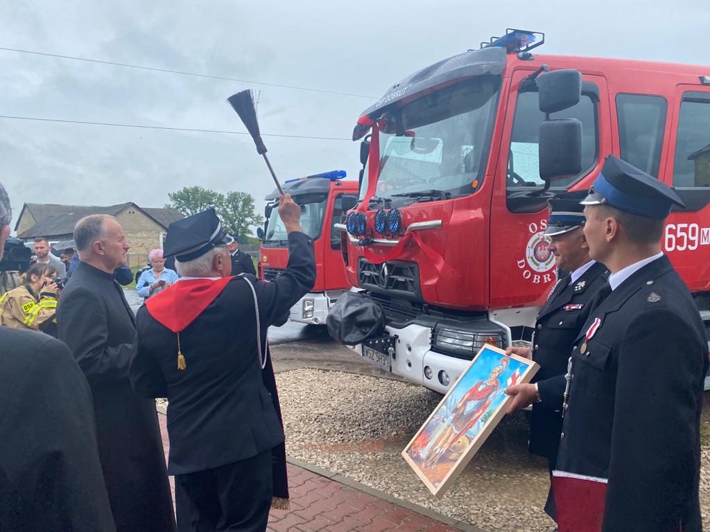Przekazanie samochodu ratowniczo-gaśniczego Ochotniczej Straży Pożarnej Dobrut w powiecie szydłowieckim