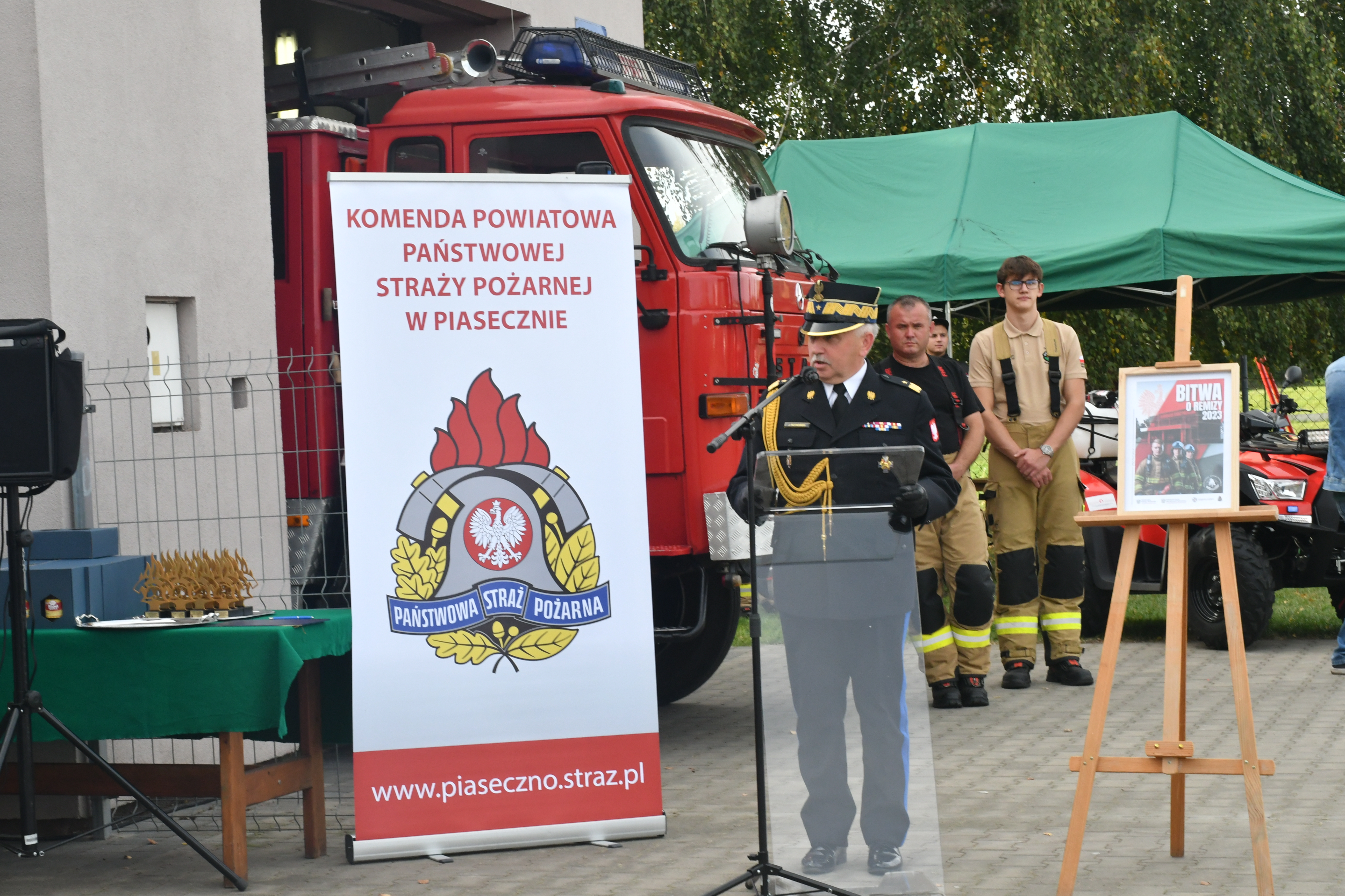 Zarówno obecni parlamentarzyści, samorządowcy, jak i nadbryg. Jarosław Piotrowski przedstawili zebranym informacje o akcji „Bitwa o Remizy”, której celem jest zachęcenie społeczeństwa do pójścia na wybory i wzięcia udziału w głosowaniu, po to, żeby umocnić polską demokrację i żeby wspomóc lokalne jednostki OSP. Jest to program Ministerstwa Spraw Wewnętrznych i Administracji oraz Ministerstwa Klimatu i Środowiska, w którym przeznaczono 1 mln na remizy w każdym powiecie dla gminy (do 20 tys. mieszkańców), która uzyska najwyższą frekwencję w wyborach do Sejmu i Senatu. W sumie do jednostek OSP z tego programu trafi ponad 300 mln zł na ich modernizację i doposażenie. Strażacy sami zdecydują na co chcą przeznaczyć te środki w danej gminie. To ogromne wsparcie dla jednostek Ochotniczych Straży Pożarnych!