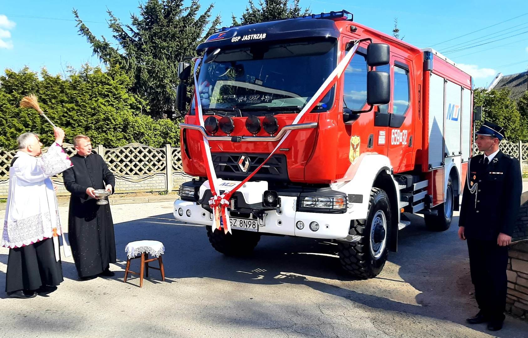 Uroczystość rozpoczęła się złożeniem meldunku st. bryg. Tomaszowi Cybul - Zastępcy Mazowieckiego Komendanta Wojewódzkiego PSP przez dowódcę uroczystości dh Tomasza Stańczyka. Po odegraniu Mazurka Dąbrowskiego i przywitaniu gości, dokonano aktu poświęcenia i przekazania samochodu ratowniczo-gaśniczego dla jednostki Ochotniczej Straży Pożarnej w Jastrzębiu.