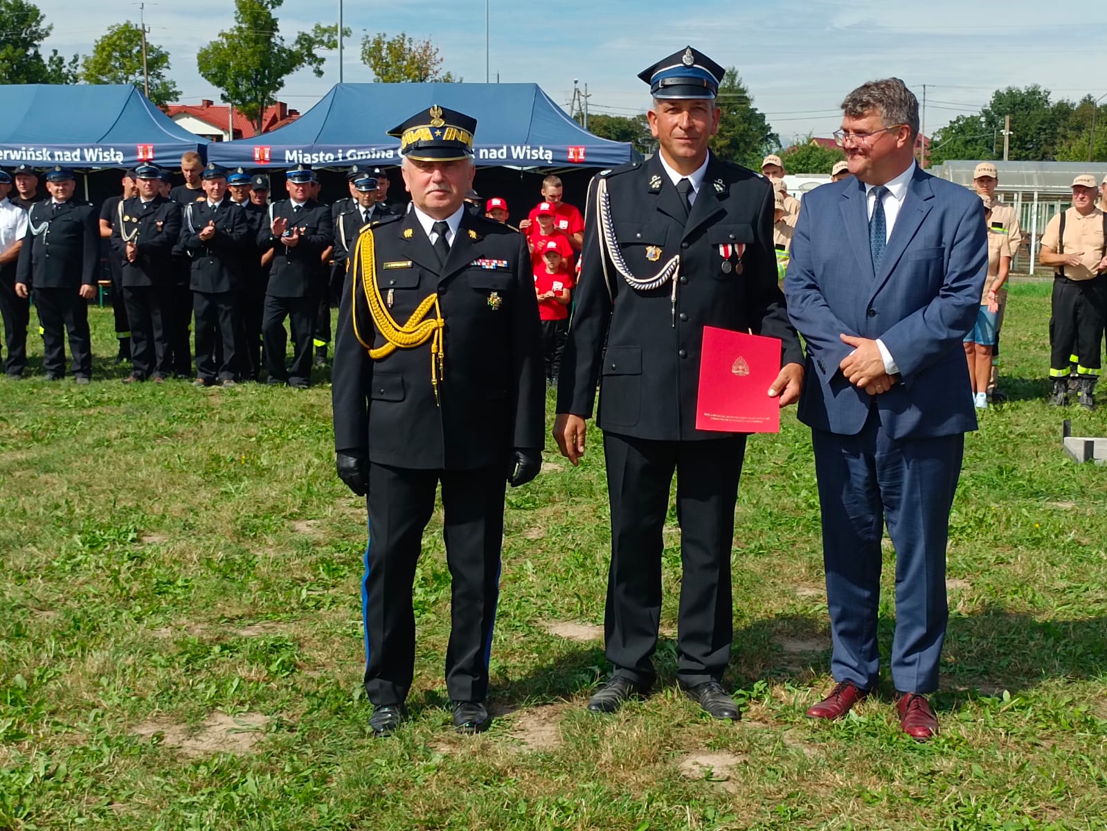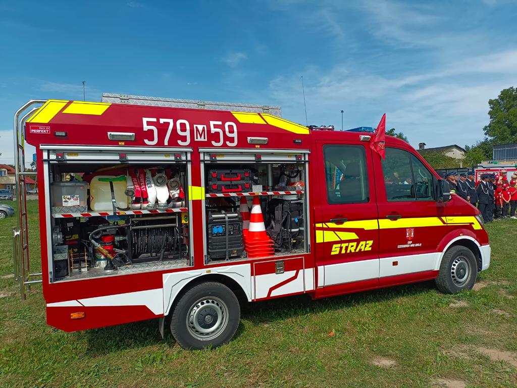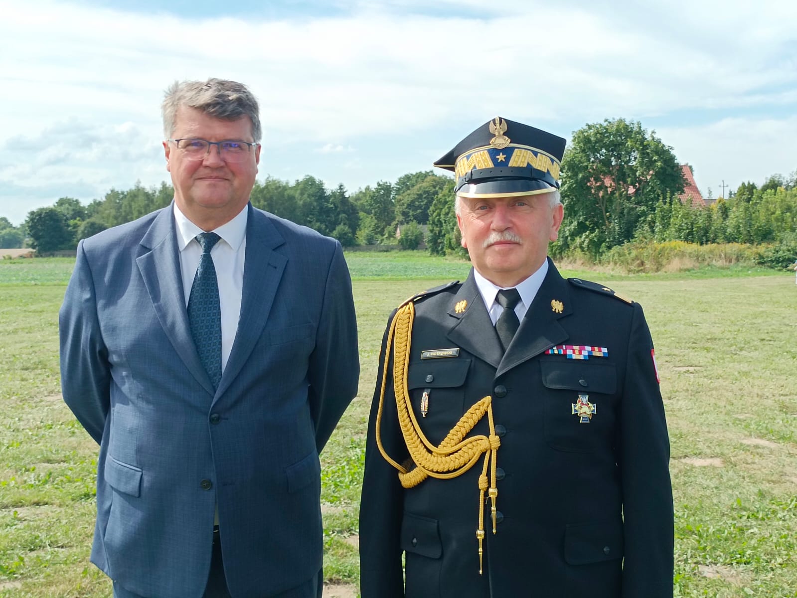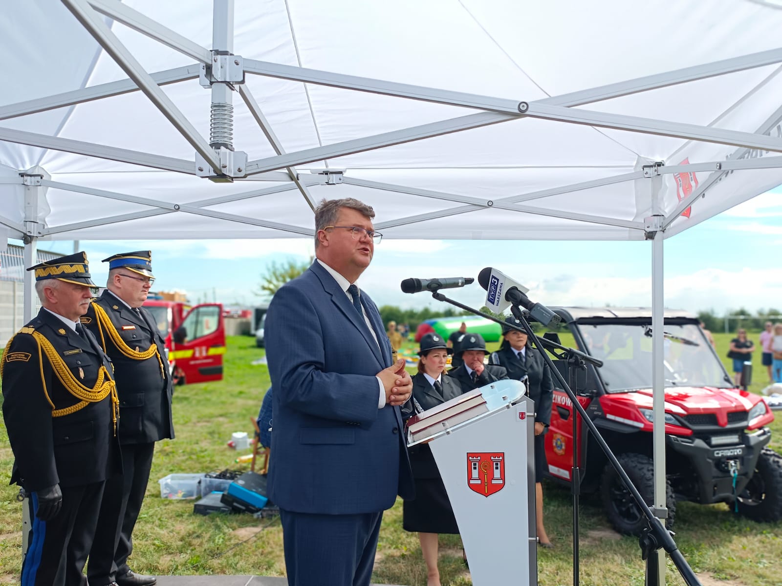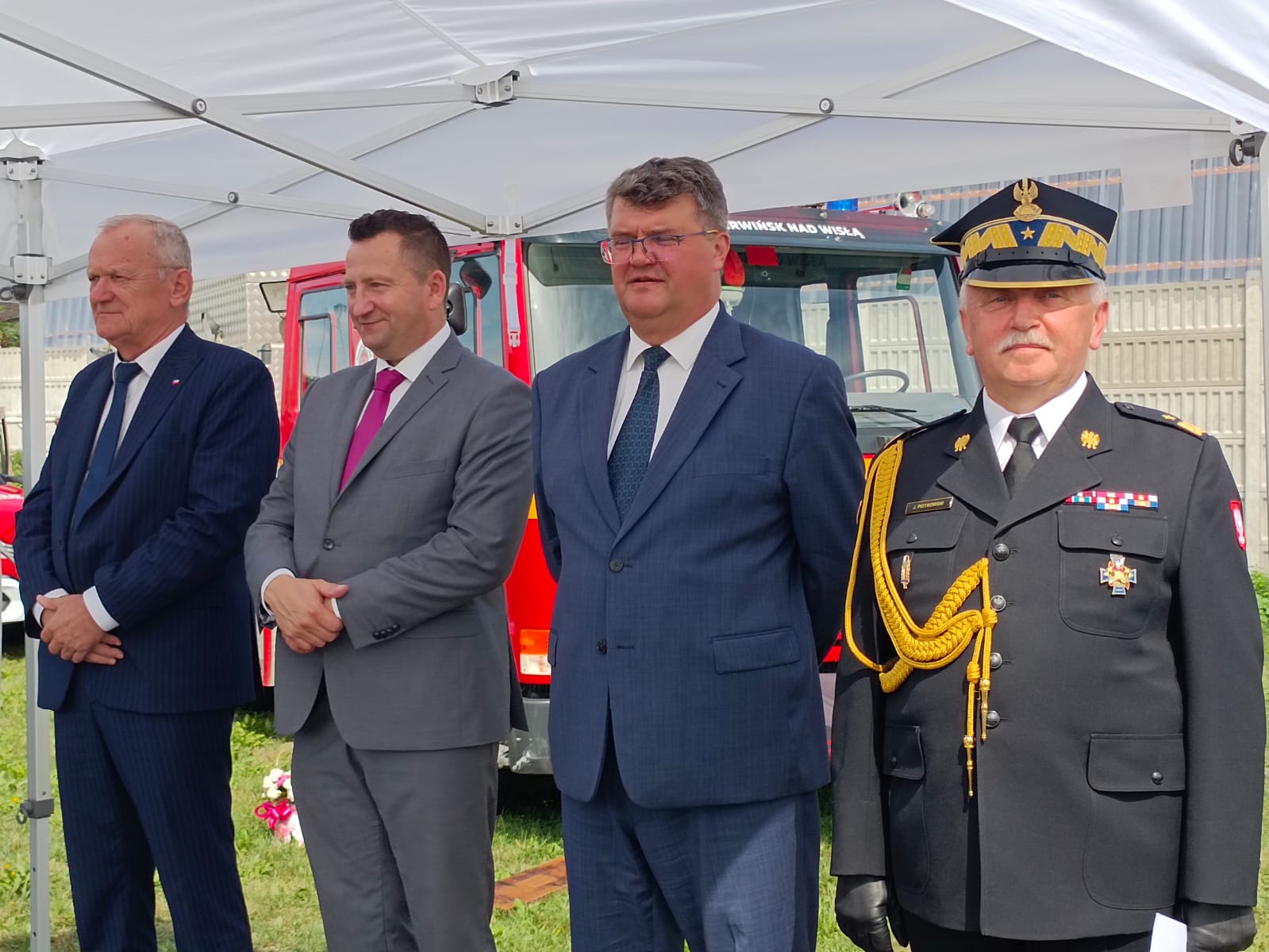 Uroczystego wręczenia aktów przekazania i kluczyków do samochodów pożarniczych oraz łodzi dokonał Pan Maciej Wąsik - Sekretarz Stanu w MSWiA w asyście nadbryg. Jarosława Piotrowskiego - Mazowieckiego Komendanta Wojewódzkiego PSP.