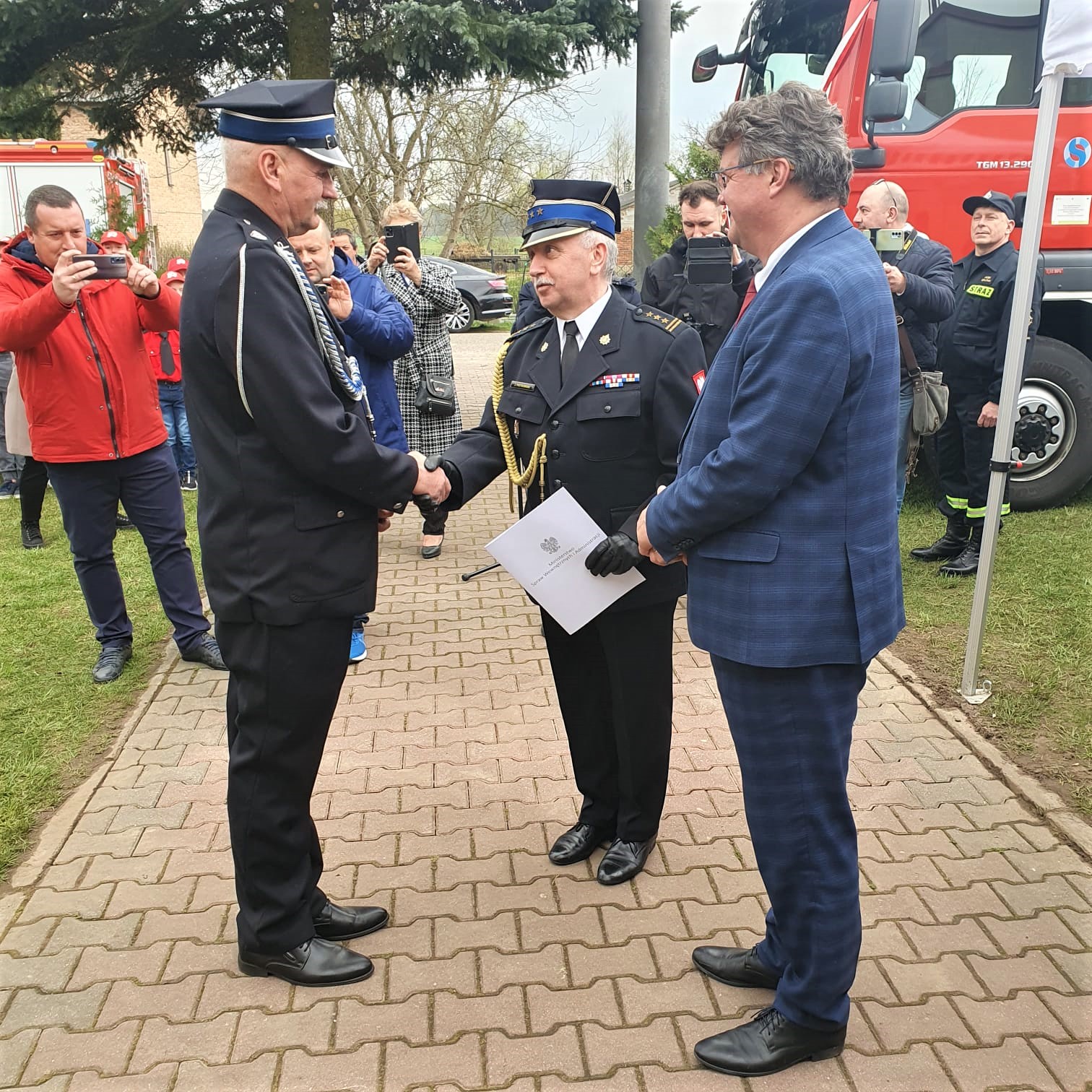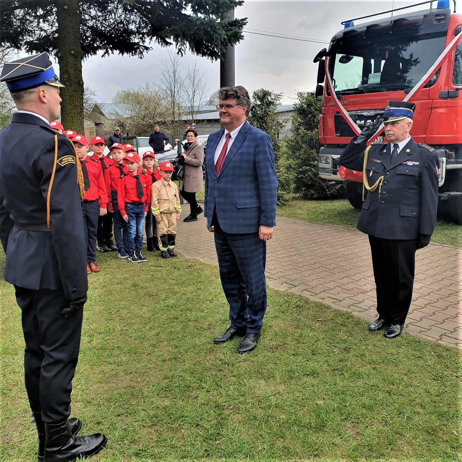 Uroczystość rozpoczęła się złożeniem meldunku Sekretarzowi Stanu Panu Maciejowi Wąsikowi. Po odegraniu Mazurka Dąbrowskiego, podniesieniu flagi na maszt i przywitaniu zebranych gości, dokonano aktu przekazania samochodu ratowniczo-gaśniczego i wręczenia promesy na zakup nowego pojazdu.