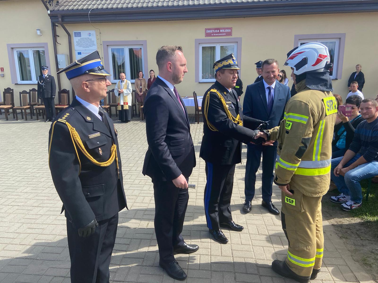 Kulminacyjnym momentem było poświęcenie oraz przekazanie średniego samochodu ratowniczo-gaśniczego dla OSP Krzeczanowo. Uroczystości zakończyły się złożeniem meldunku oraz odprowadzeniem pocztu sztandarowego.