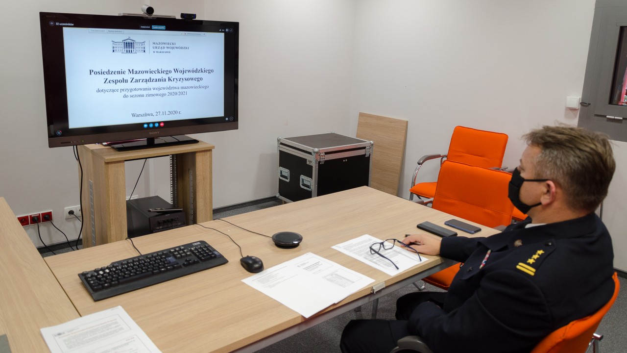 Posiedzenie Mazowieckiego Wojewódzkiego Zespołu Zarządzania Kryzysowego odbyło się w piątek, 27 listopada br., a w związku z obowiązkiem stosowania się do zasad reżimu sanitarnego, zorganizowane zostało w formie wideokonferencji.