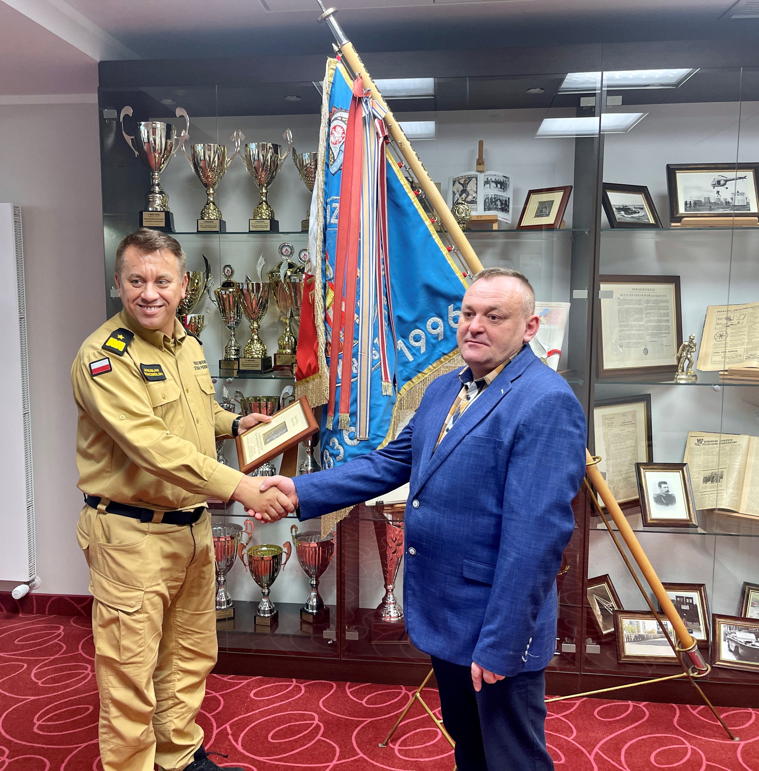 20 września 2022 roku na zaproszenie Mazowieckiego Komendanta Wojewódzkiego PSP nadbryg. Jarosława Nowosielskiego, w siedzibie Komendy Wojewódzkiej PSP w Warszawie gościł pracownik Zakładu Złotniczego Wiesława Rusak – Pan Sebastian Staszowski, który nieodpłatnie odświeżył wymagające renowacji metalowe elementy sztandaru Komendy Wojewódzkiej PSP w Warszawie.