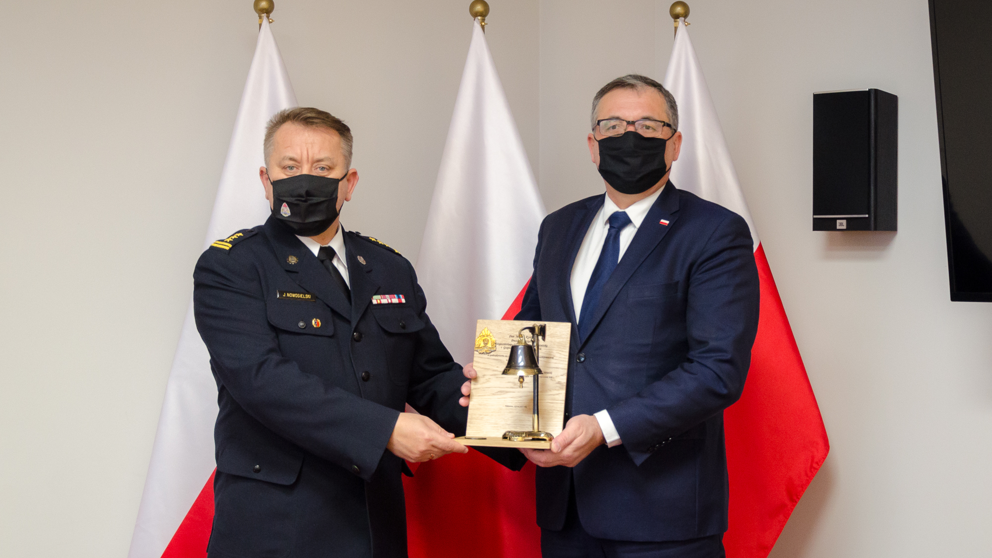 19 stycznia miało miejsce robocze spotkanie st. bryg. Jarosława Nowosielskiego mazowieckiego komendanta wojewódzkiego PSP z panem Markiem Ryszka prezesem Wojewódzkiego Funduszu Ochrony Środowiska i Gospodarki Wodnej w Warszawie.