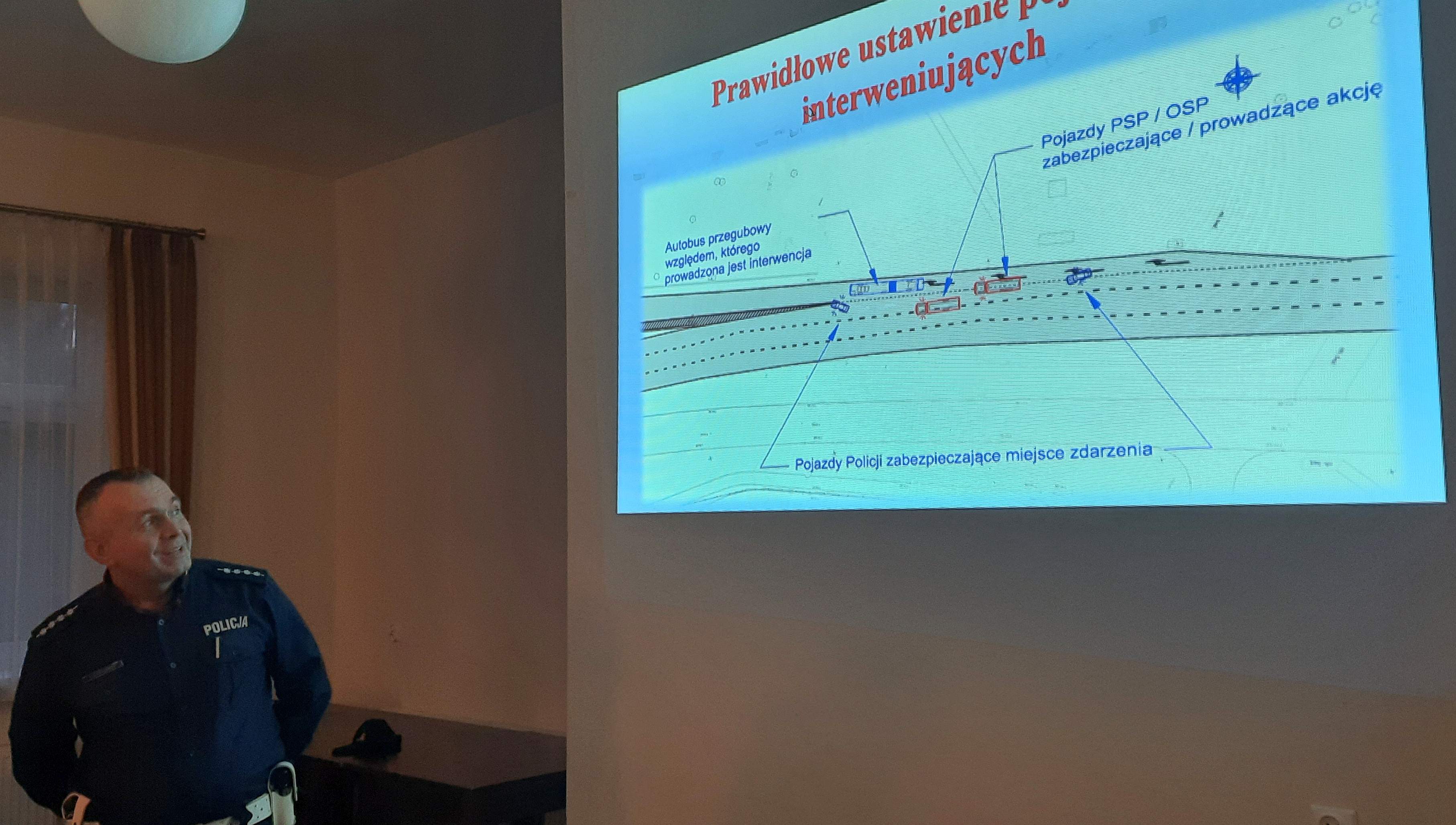 - zasady zabezpieczenia miejsca zdarzenia z wykorzystaniem pojazdów Policji i straży pożarnej;