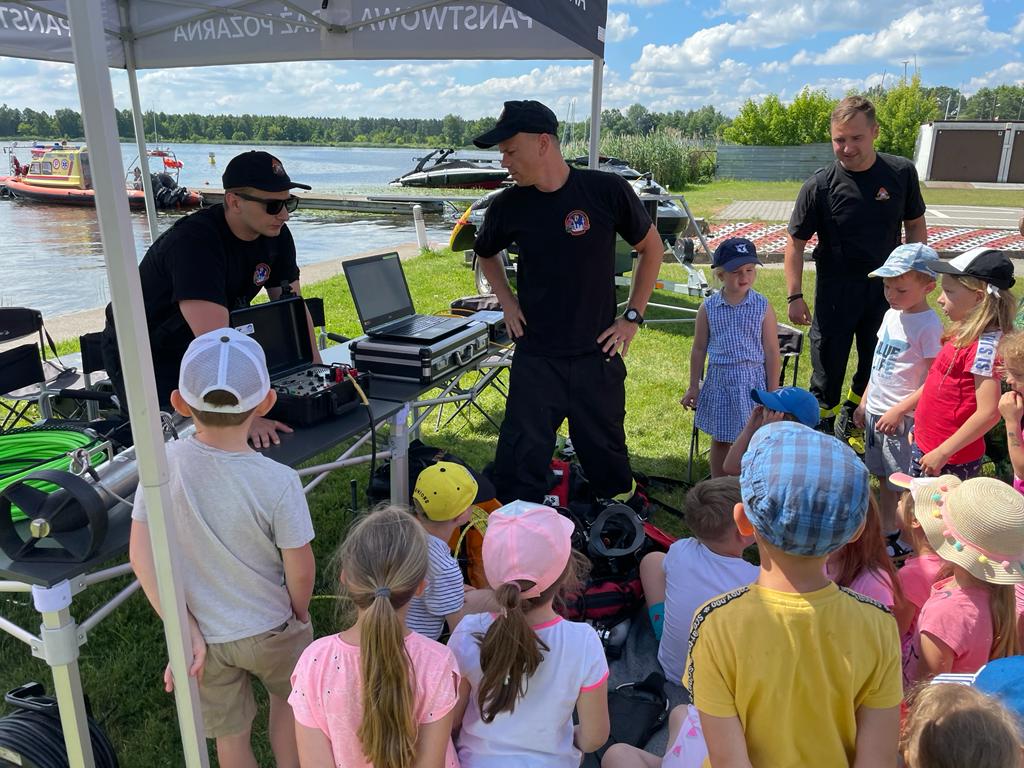 Uczestnicy mieli również możliwość obserwowania pokazów sprzętu i działań ratownictwa wodnego, prezentowanego przez Specjalistyczną Grupę Ratownictwa Wodno-Nurkowego Komendy Miejskiej PSP m.st. Warszawy, w zakresie technik ratownictwa wodnego, w których będzie można zobaczyć w jaki sposób ratuje się osobę tonącą.