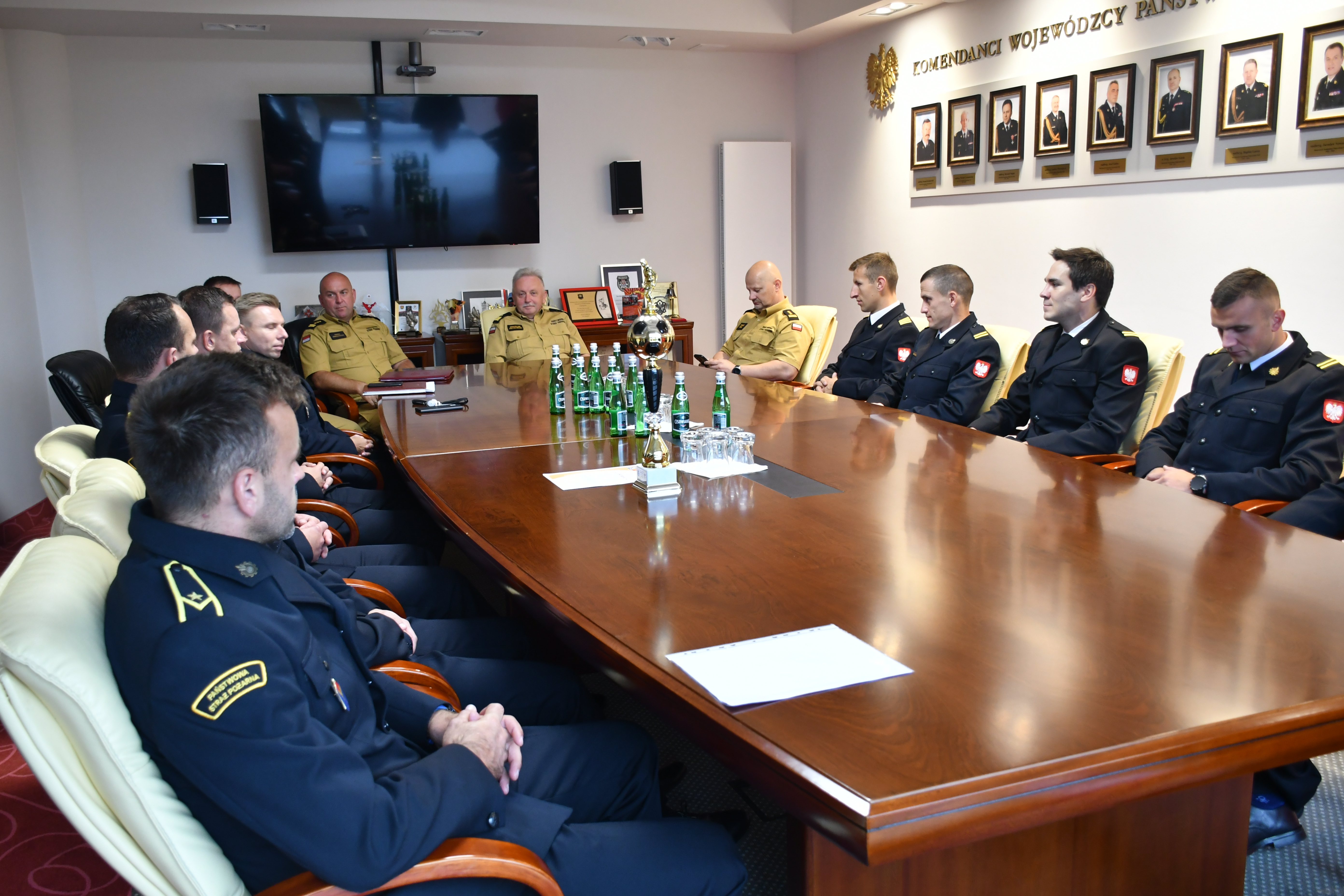 Spotkanie Mazowieckiego Komendanta Wojewódzkiego PSP z wicemistrzami Polski Strażaków PSP w piłce nożnej 6-osobowej