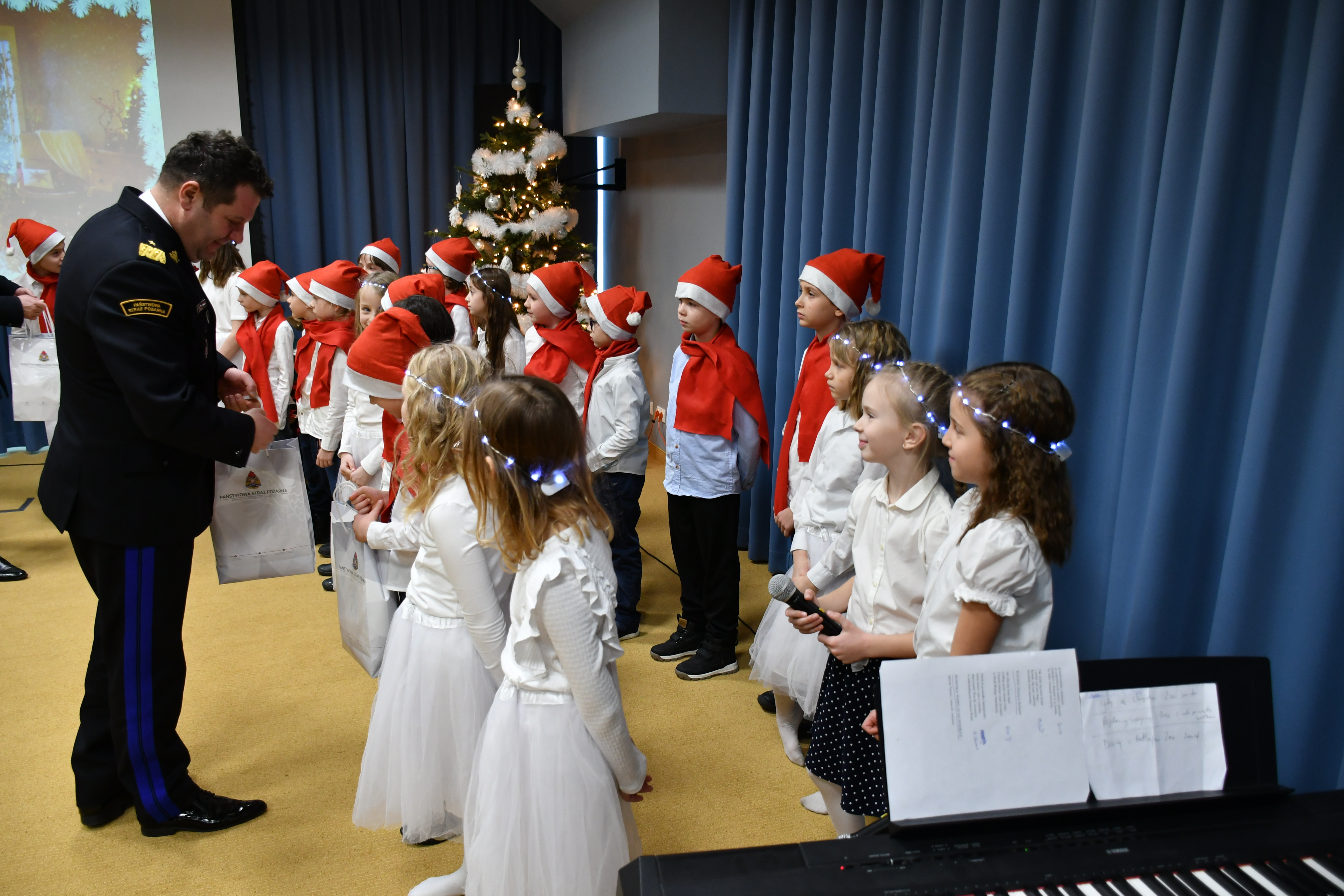 Spotkanie rozpoczął nadbrygadier Artur Gonera Mazowiecki Komendant Wojewódzki Państwowej Straży Pożarnej witając zaproszonych gości, pracowników Komendy Wojewódzkiej PSP w Warszawie oraz Jednostki Ratowniczo-Gaśniczej nr 9 Komendy Miejskiej PSP m.st. Warszawy. Następnie wystąpiła uczniowska grupa artystyczna ze Szkoły Podstawowej im. Janusza Korczaka w Józefosławiu śpiewając w rytm akompaniamentu kolędy i świąteczne utwory. Zapanował świąteczny i podniosły nastrój, po czym nadszedł czas na oficjalne przemówienia, wspólną modlitwę, dzielenie się opłatkiem oraz wzajemne życzenia.