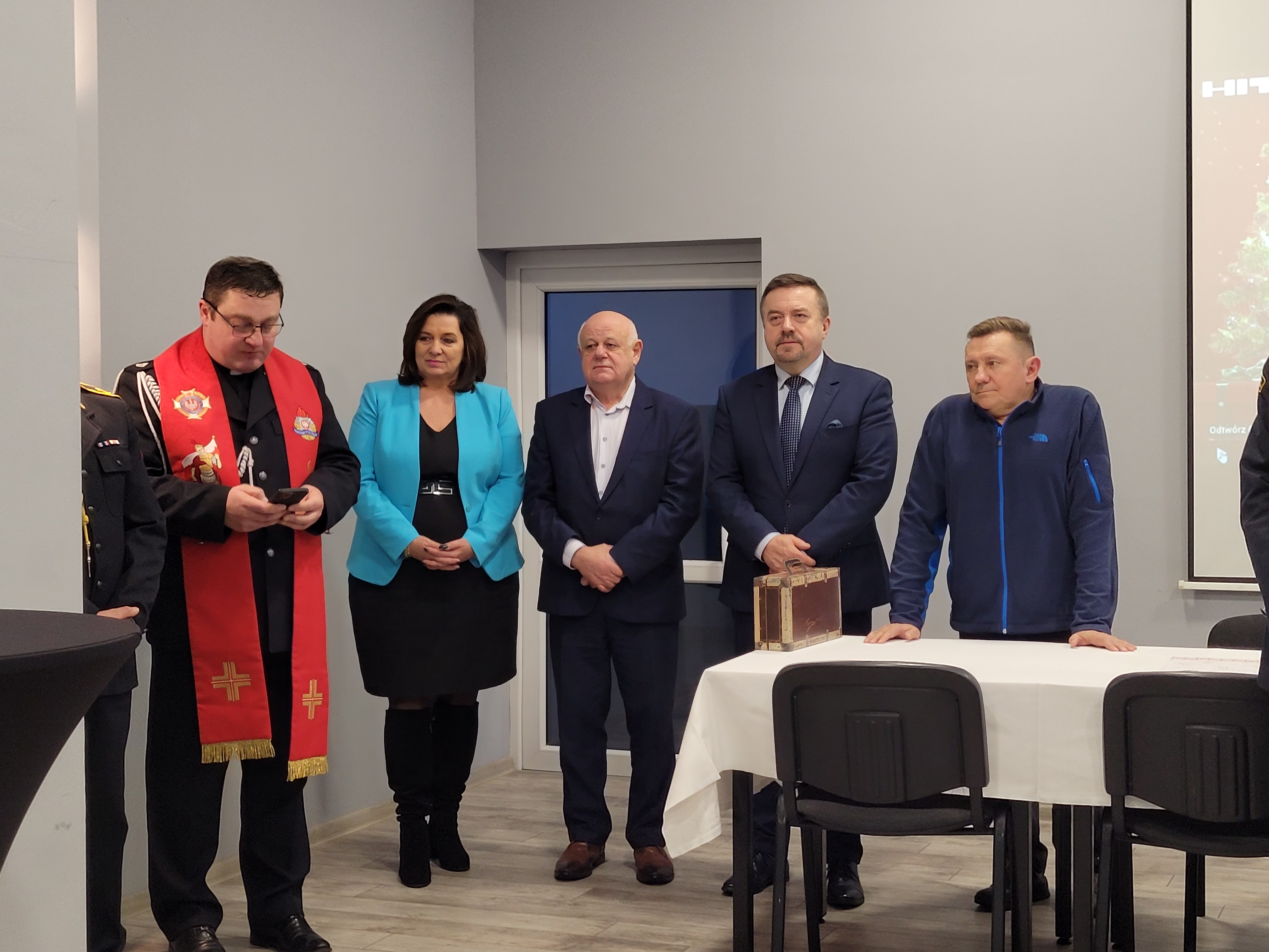 Kapelan Strażaków powiatu żyrardowskiego ks. Sławomir Tulin dokonał poświęcenia opłatka oraz pobłogosławił zgromadzonych.