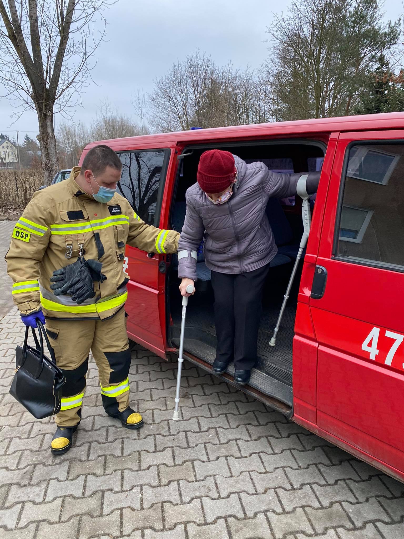 W ramach Narodowego Programu Szczepień strażacy pomagają dotrzeć do punktów szczepień przeciw COVID-19 osobom, które nie mają możliwości dotarcia we własnym zakresie.