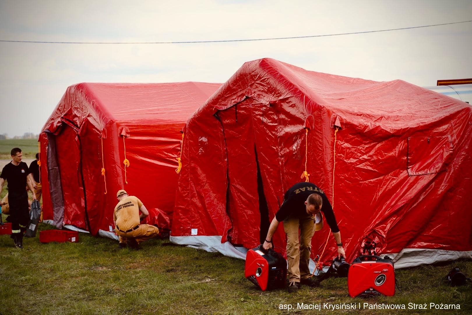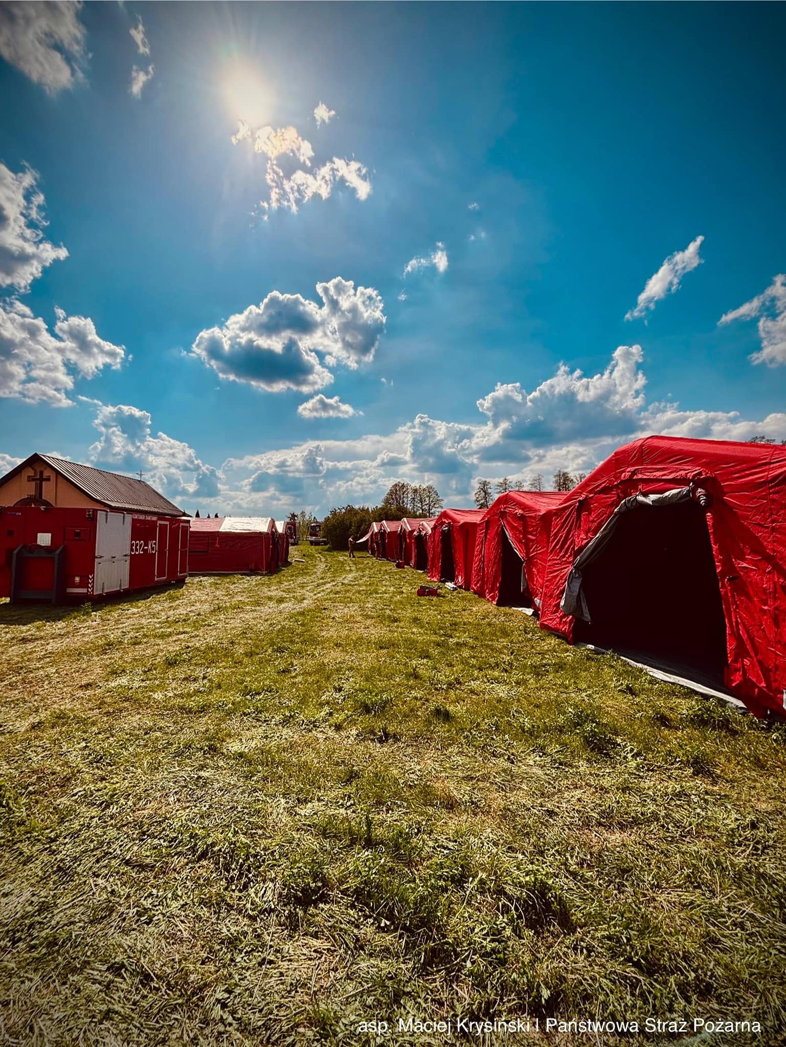 - 84 strażaków i 27 jednostek różnego typu pojazdów i sprzętu, w tym: samochody, przyczepy, quad, pompy oraz kontenery kwaterunkowe i sanitarne.