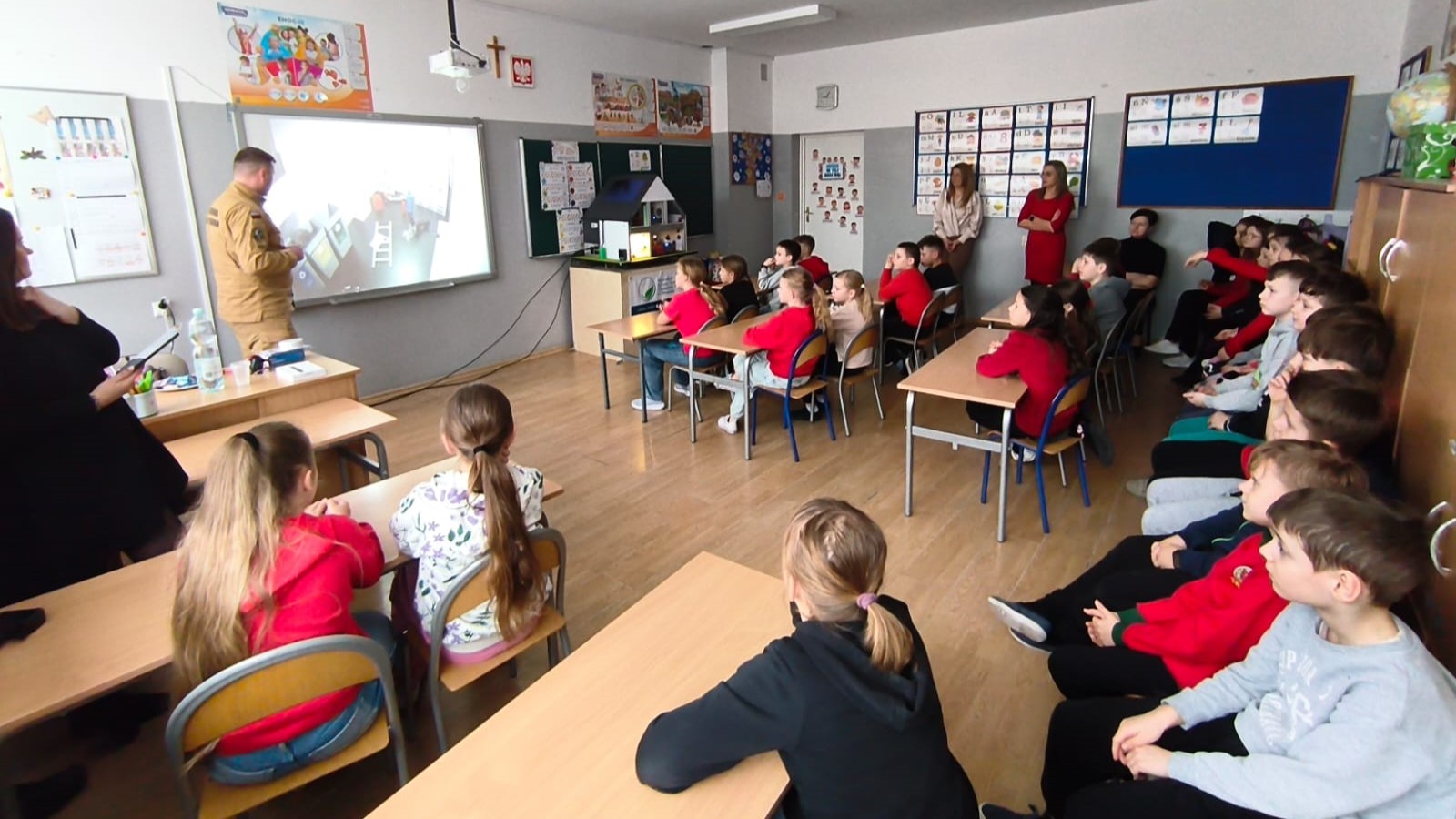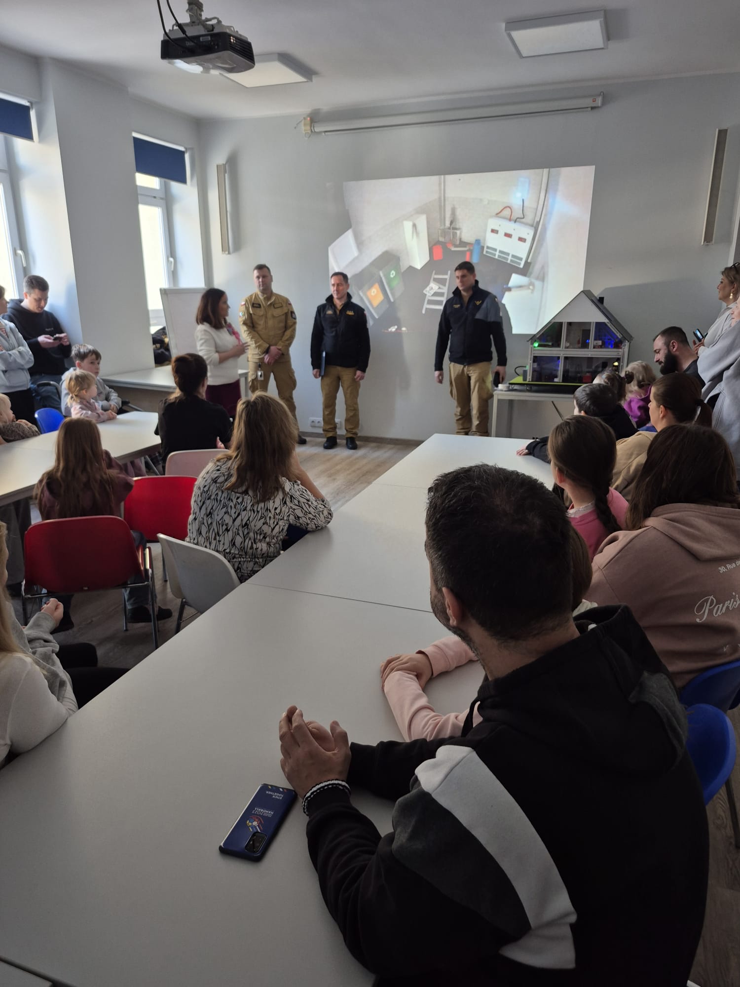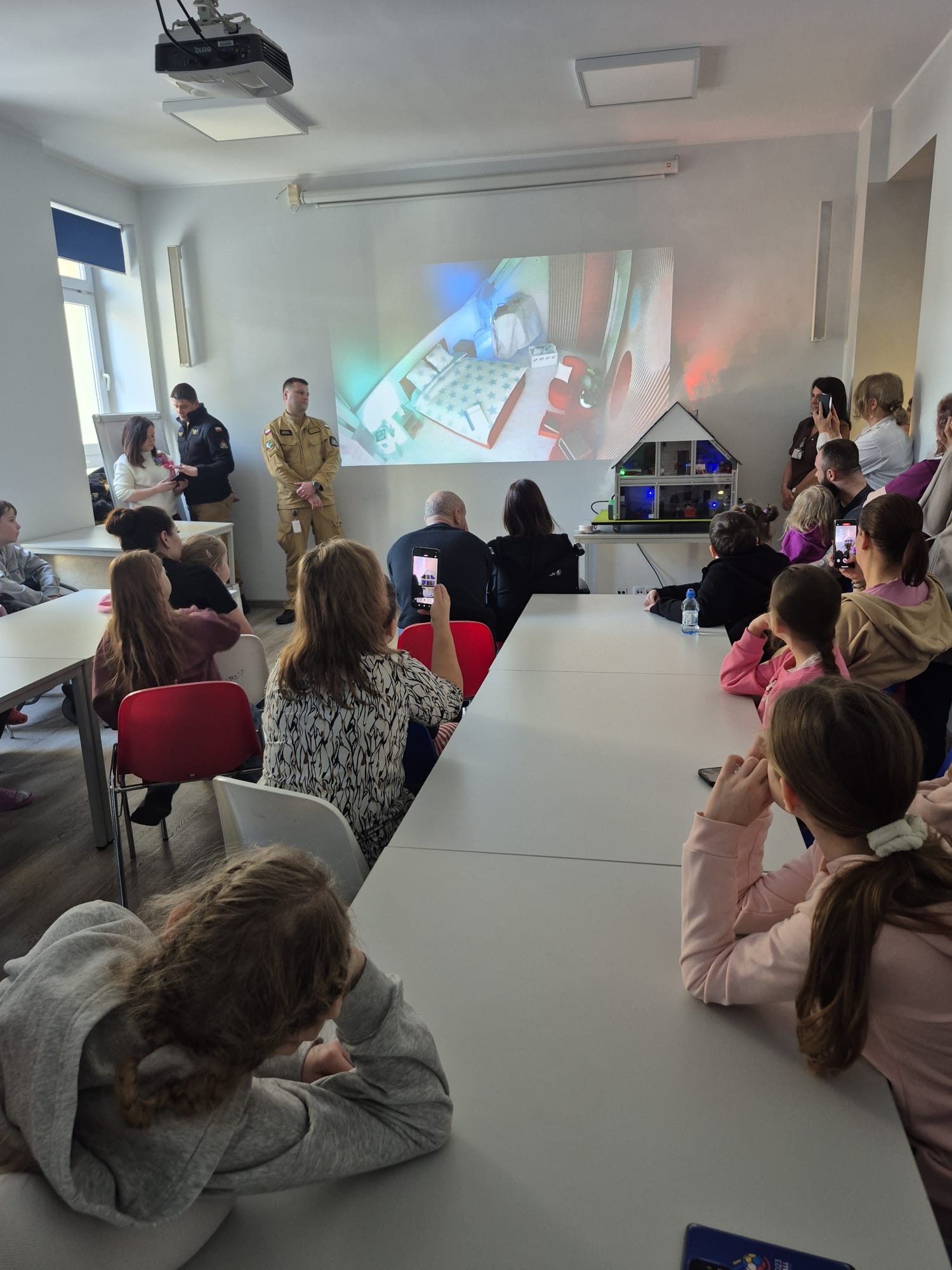 Tym razem mobilny symulator zagrożeń pożarowych posłużył do przeprowadzenia zajęć edukacyjnych na Oddziale Dziecięcym Narodowego Instytutu Geriatrii, Reumatologii i Rehabilitacji im. prof. dr hab. med. Eleonory Reicher w Warszawie, a także w trzech Szkołach Podstawowych na terenie powiatu wyszkowskiego (w Brańszczyku, Łosinnie, Olszance). W ramach zawartego porozumienia funkcjonariusze Komendy Wojewódzkiej PSP w Warszawie zorganizowali także spotkanie dla pracowników Warszawskiego Rolno-Spożywczego Rynku Hurtowego S.A.