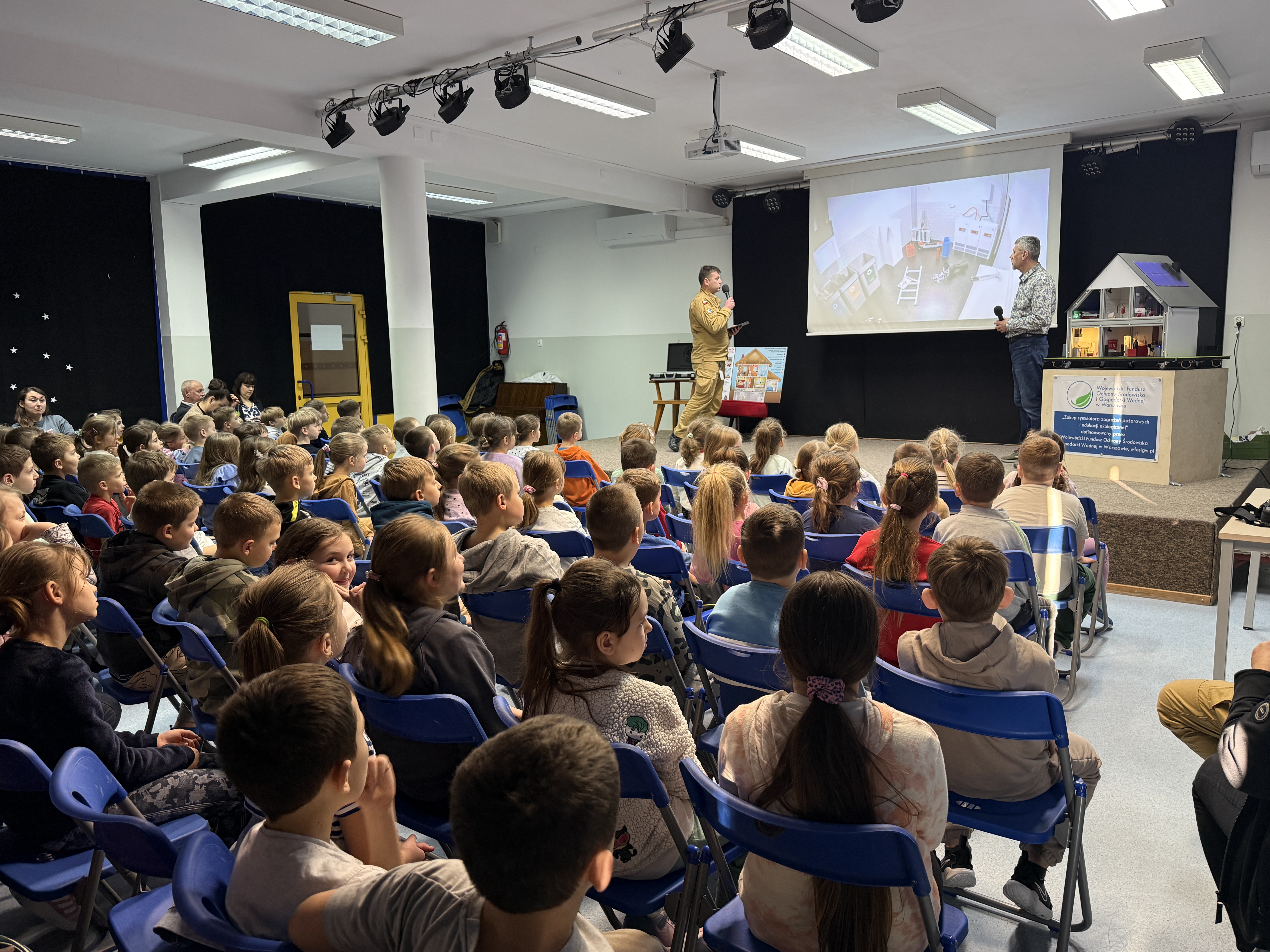 W ostatnich tygodniach funkcjonariusze i pracownicy cywilni Wydziału Organizacji i Nadzoru Komendy Wojewódzkiej PSP w Warszawie, w ramach zajęć z zakresu prewencji społecznej, odwiedzili w sumie 17 powiatów województwa mazowieckiego. Spotkania miały na celu przeprowadzenie zajęć edukacyjnych z wykorzystaniem mobilnego symulatora zagrożeń pożarowych, który do Komendy Wojewódzkiej PSP w Warszawie trafił dzięki dofinansowaniu z Wojewódzkiego Funduszu Ochrony Środowiska i Gospodarki Wodnej w Warszawie.