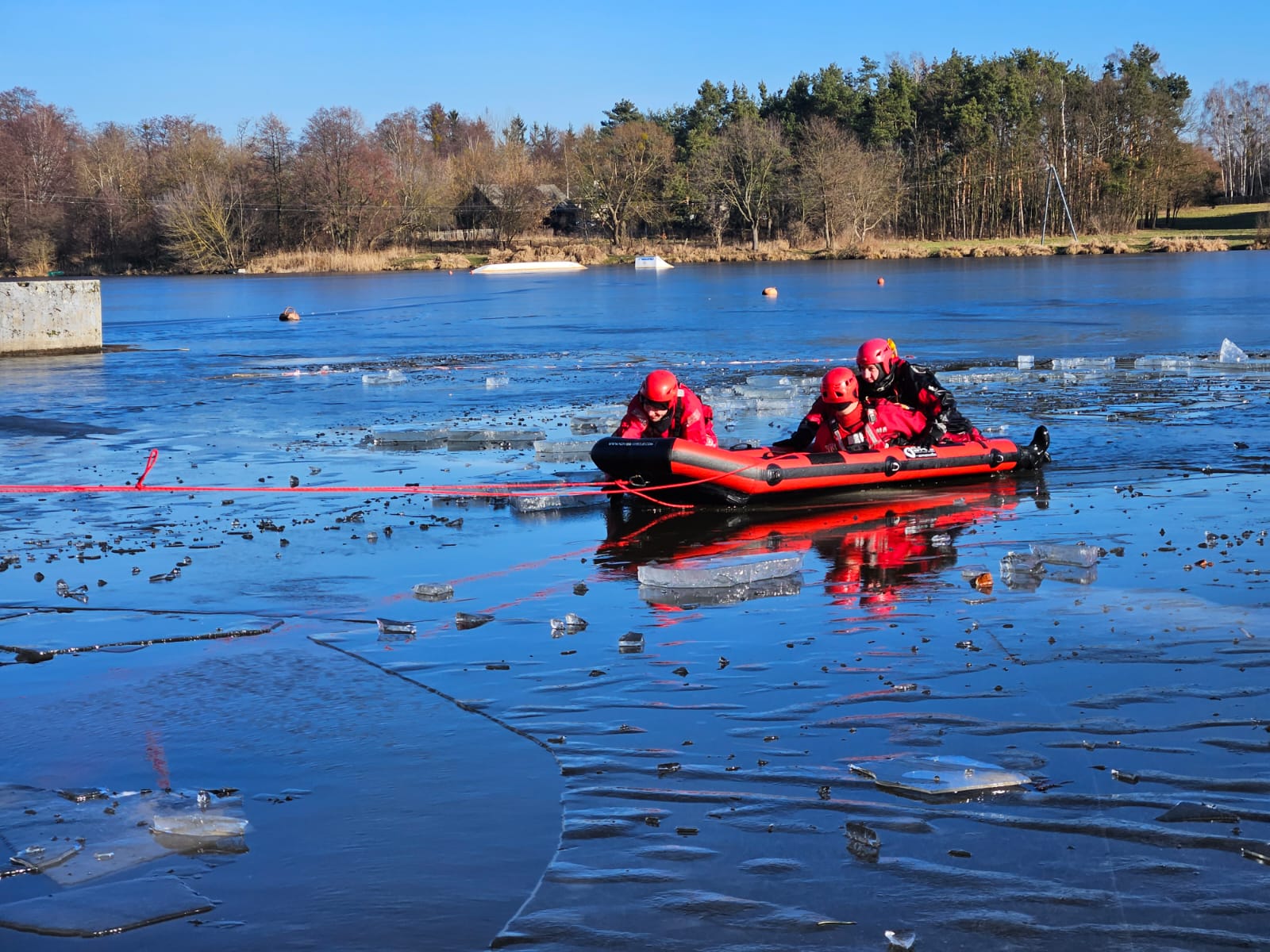 W dniach 15-17, 22-24 i 29-31 stycznia oraz 5-7 lutego 2024 roku Ośrodek Szkolenia w Pionkach KW PSP w Warszawie przeprowadził szkolenia doskonalące z ratownictwa lodowego.