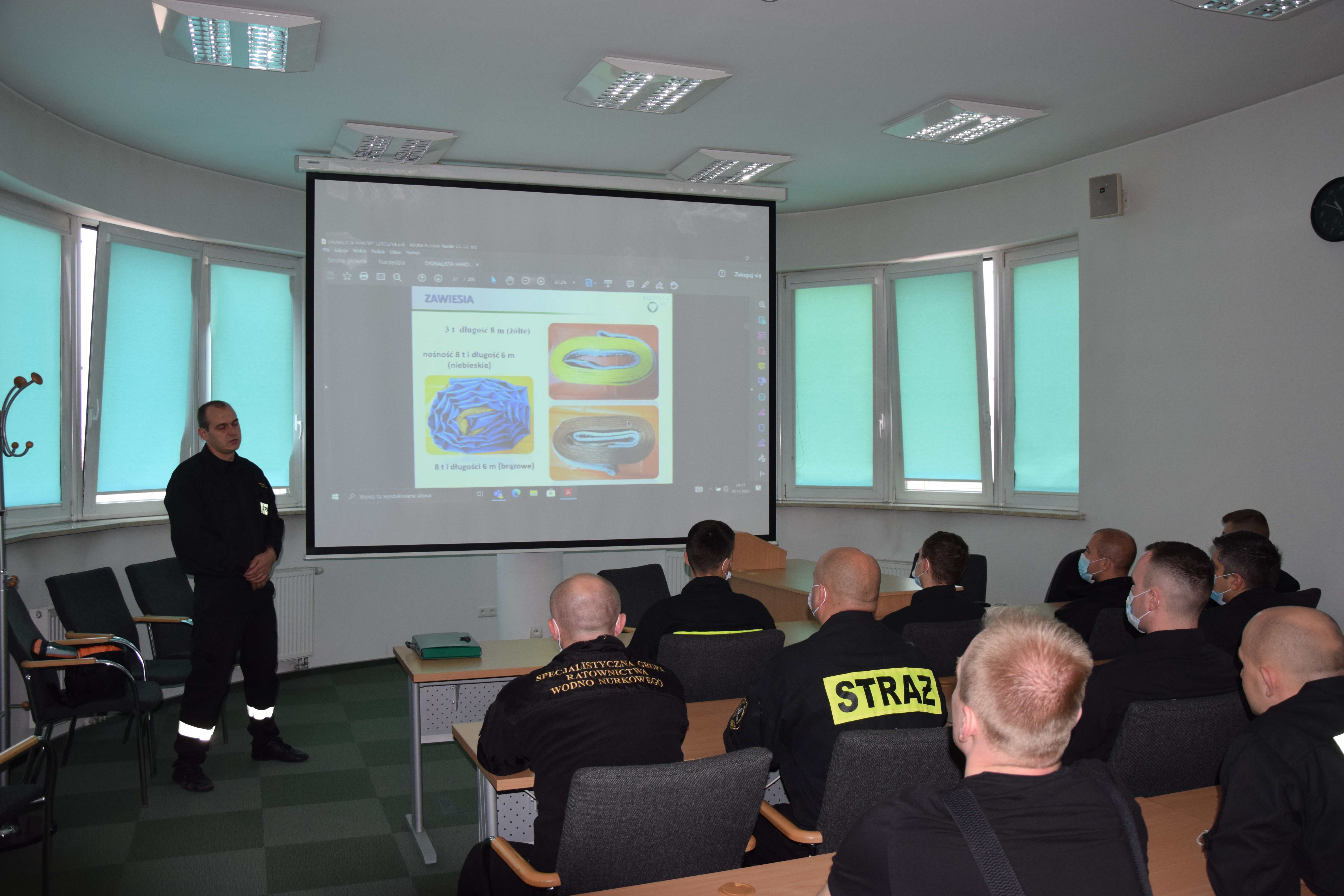 Celem szkolenia było przygotowanie strażaków do eksploatacji, bezpiecznej obsługi i konserwacji zawiesi oraz współpracy z operatorem urządzeń dźwigowych.